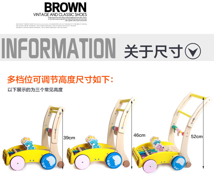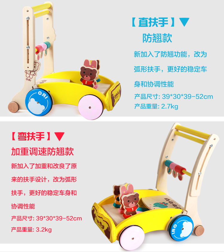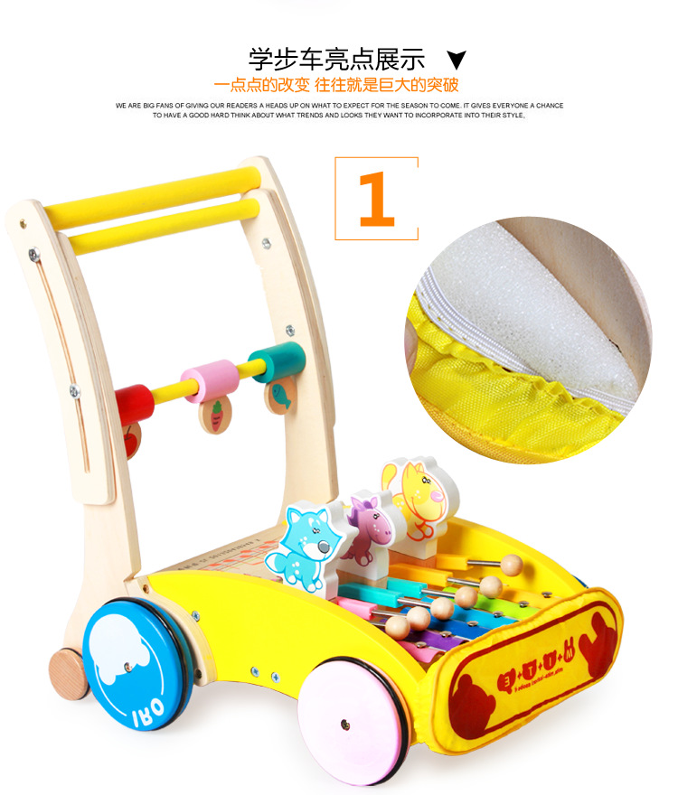 Wooden multifunctional Walker trolley baby walker anti o leg speed regulation anti skid anti warping