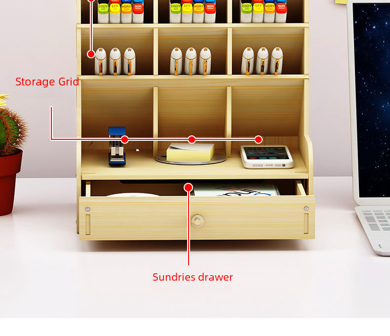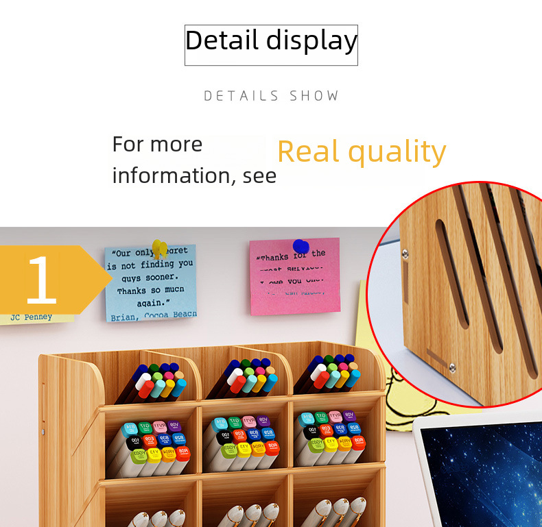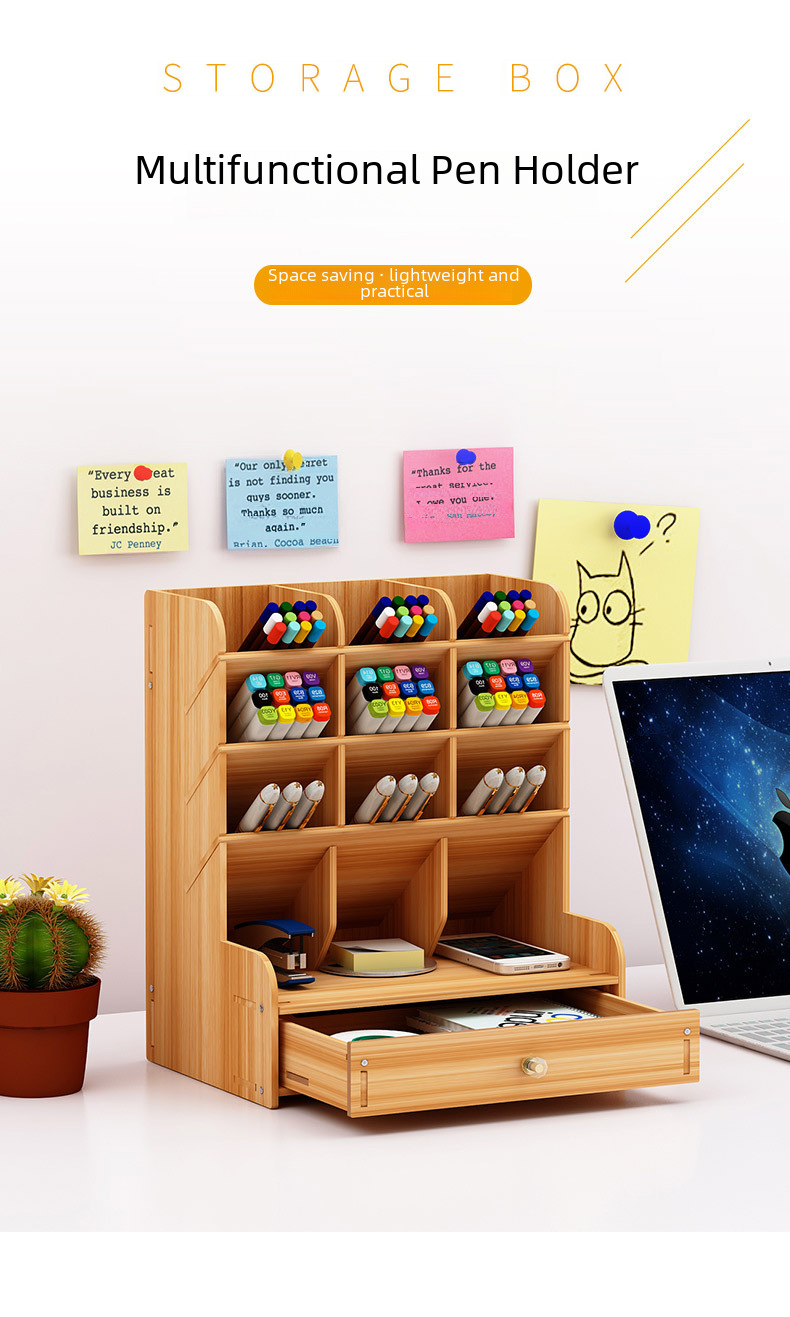 Wooden pen holder storage box large capacity Nordic creative fashion multi compartment pen holder office desktop storage rack