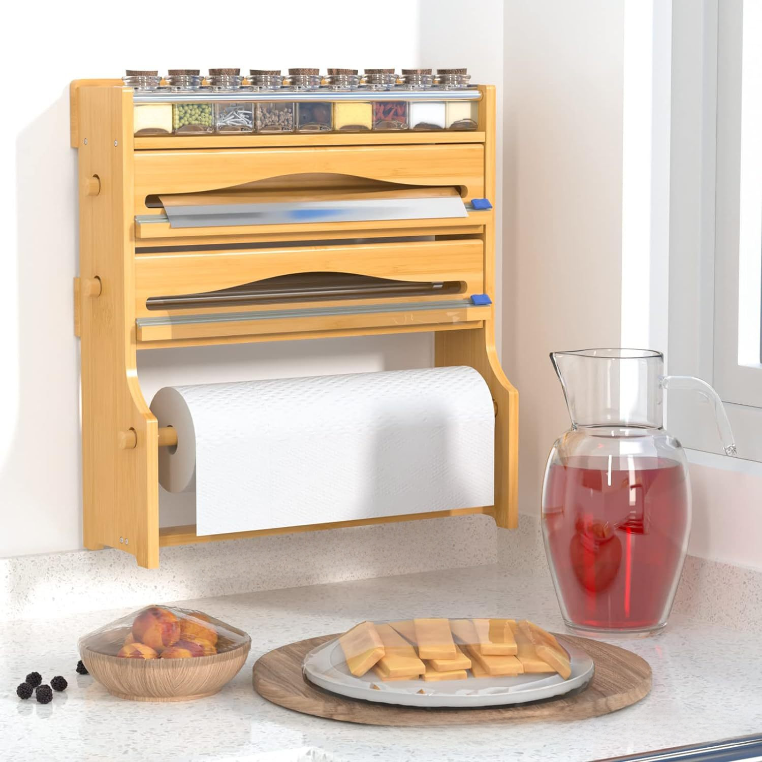 Wooden plastic wrap storage rack kitchen seasoning rack three layer protective film roll rack bamboo living room desktop storage rack