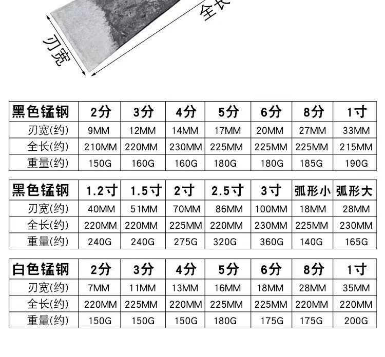 - 1.5-inch old-fashioned manganese steel chisel (send handle)
