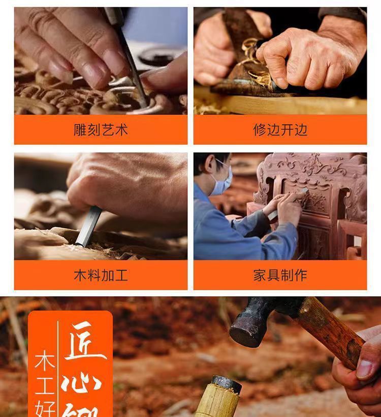 Woodworking Chisel Hand forged Flower Chisel Set Woodworking Tools Complete Book Hand carved Root Wood Old fashioned Chisel Wholesale