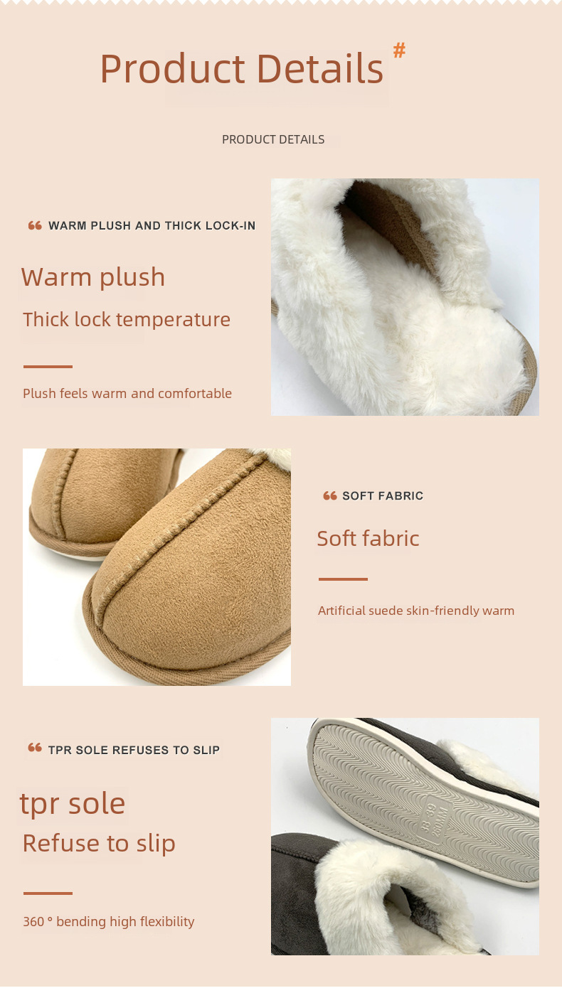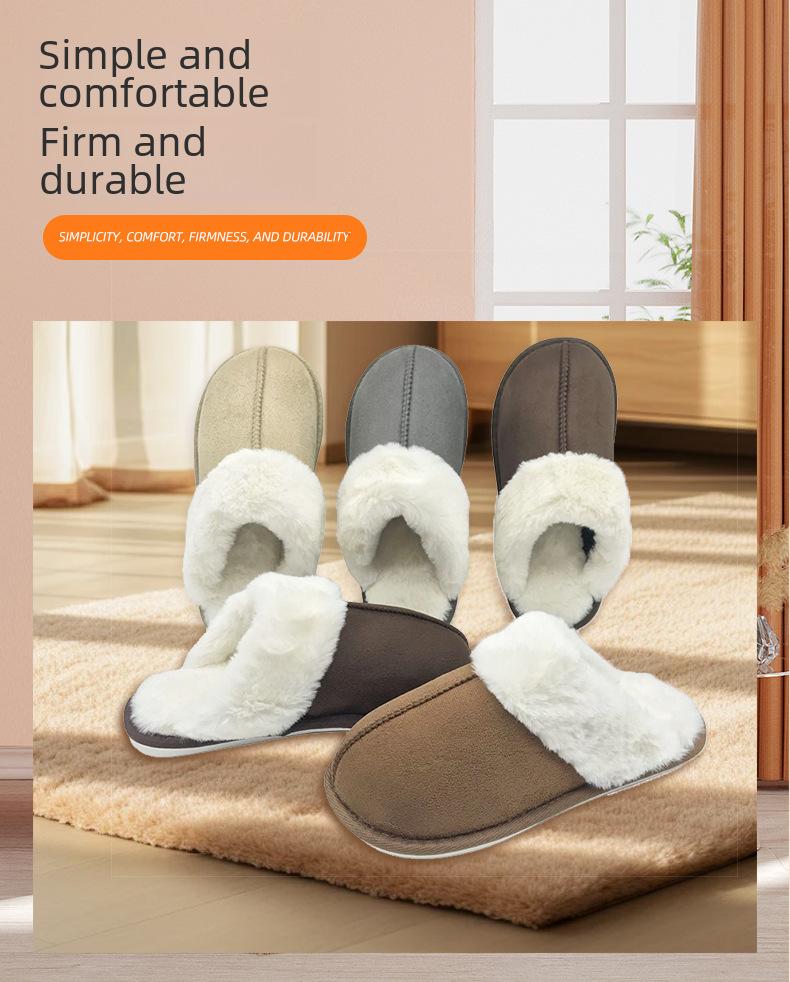 Wool mouth slippers cotton slippers home warm thick bottom plush shoes autumn and winter couple indoor plush comfortable floor slippers