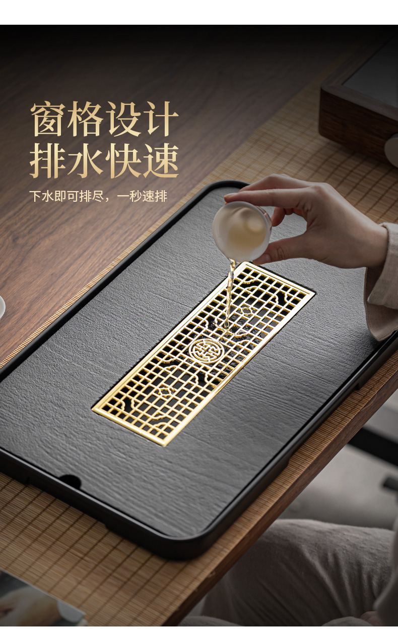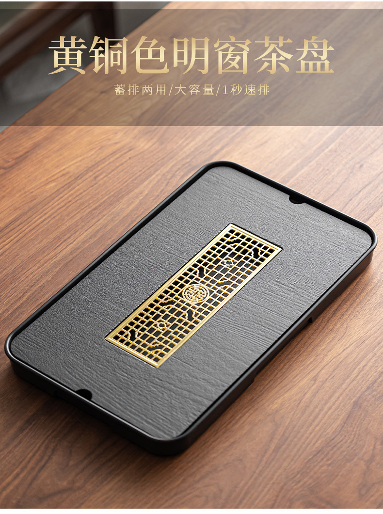 - (Large) ancient window black rectangular imitation black gold tea tray 43_26 [water supply drain pipe drain ball]]