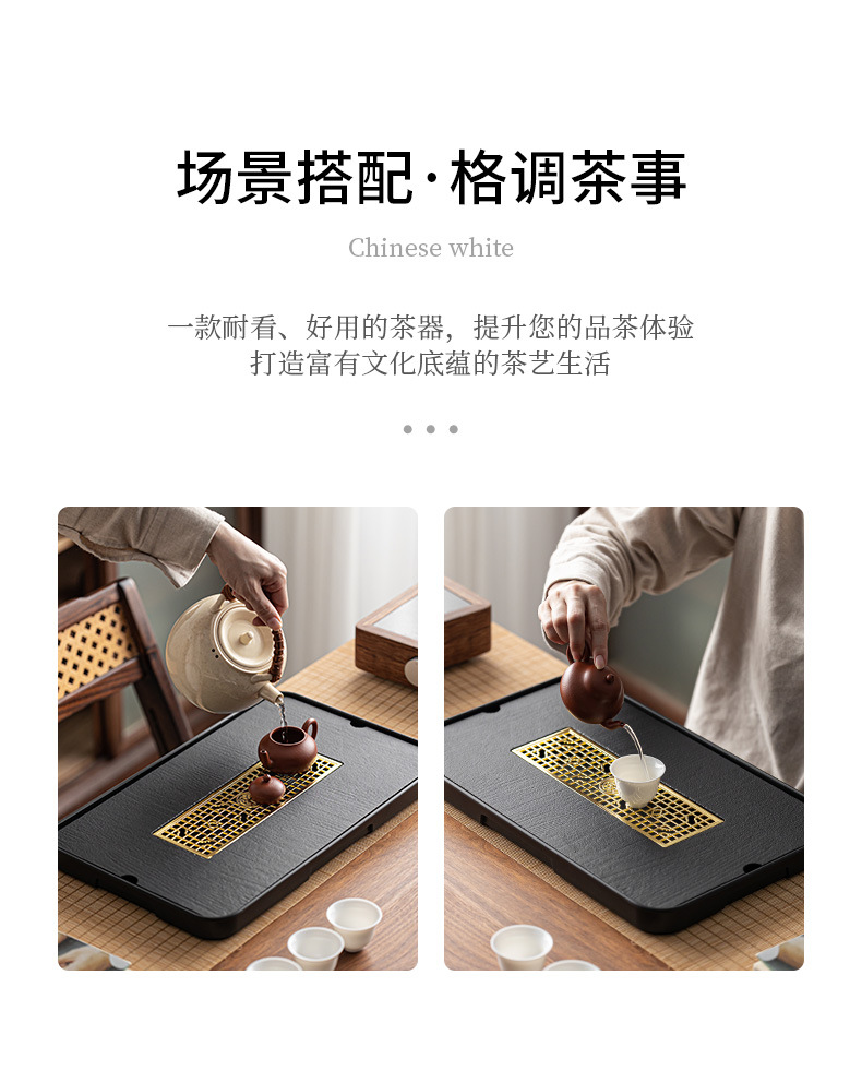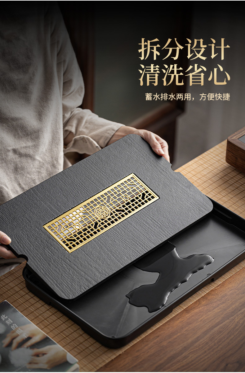 Wujin Stone Tea Tray Household Tea Set Tray Draining Small Light Luxury Modern Dry Brewing Table Small Tea Table Storage Draining Tea Sea