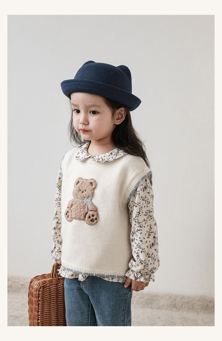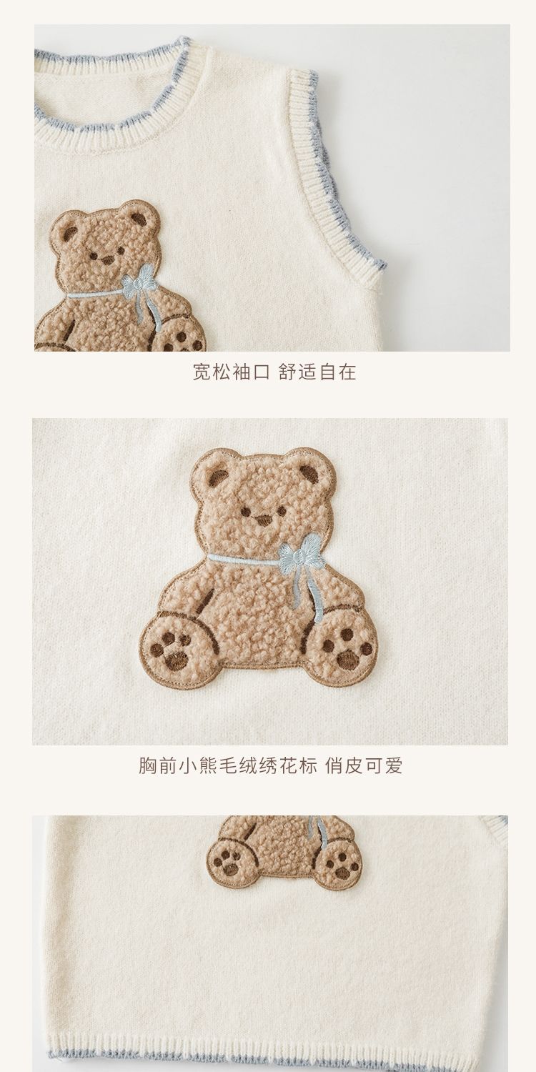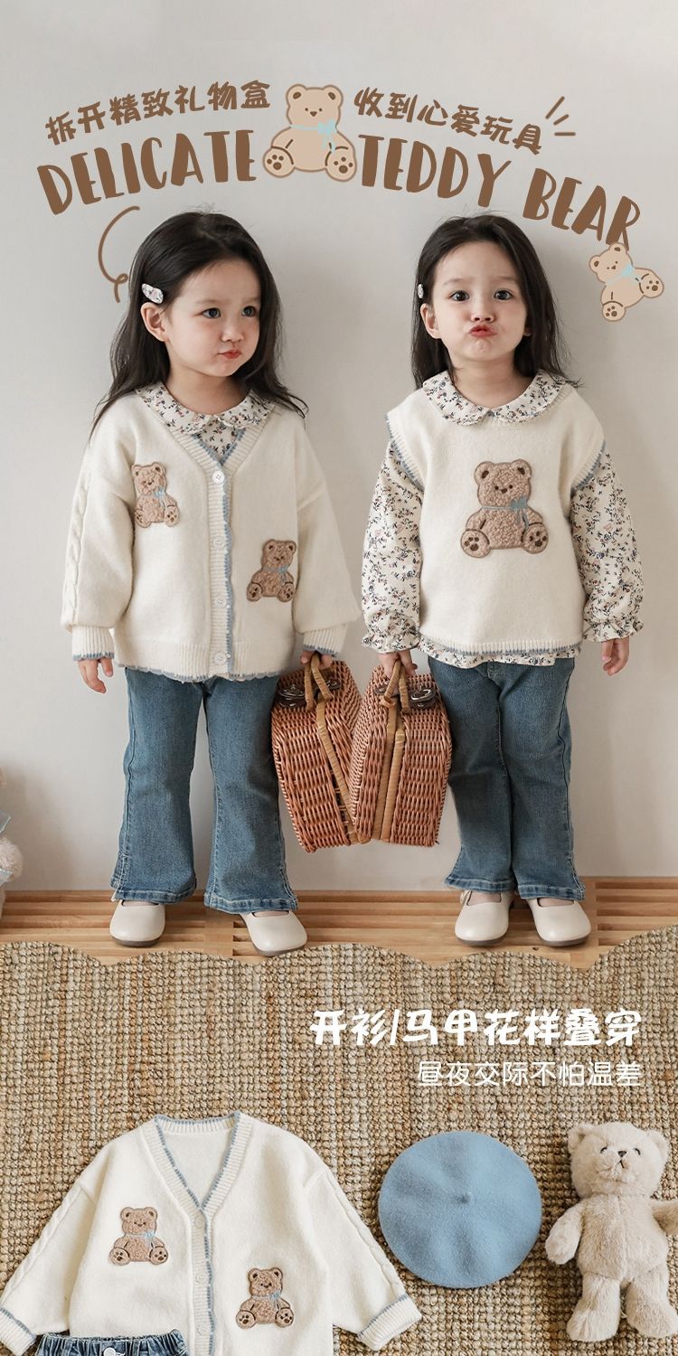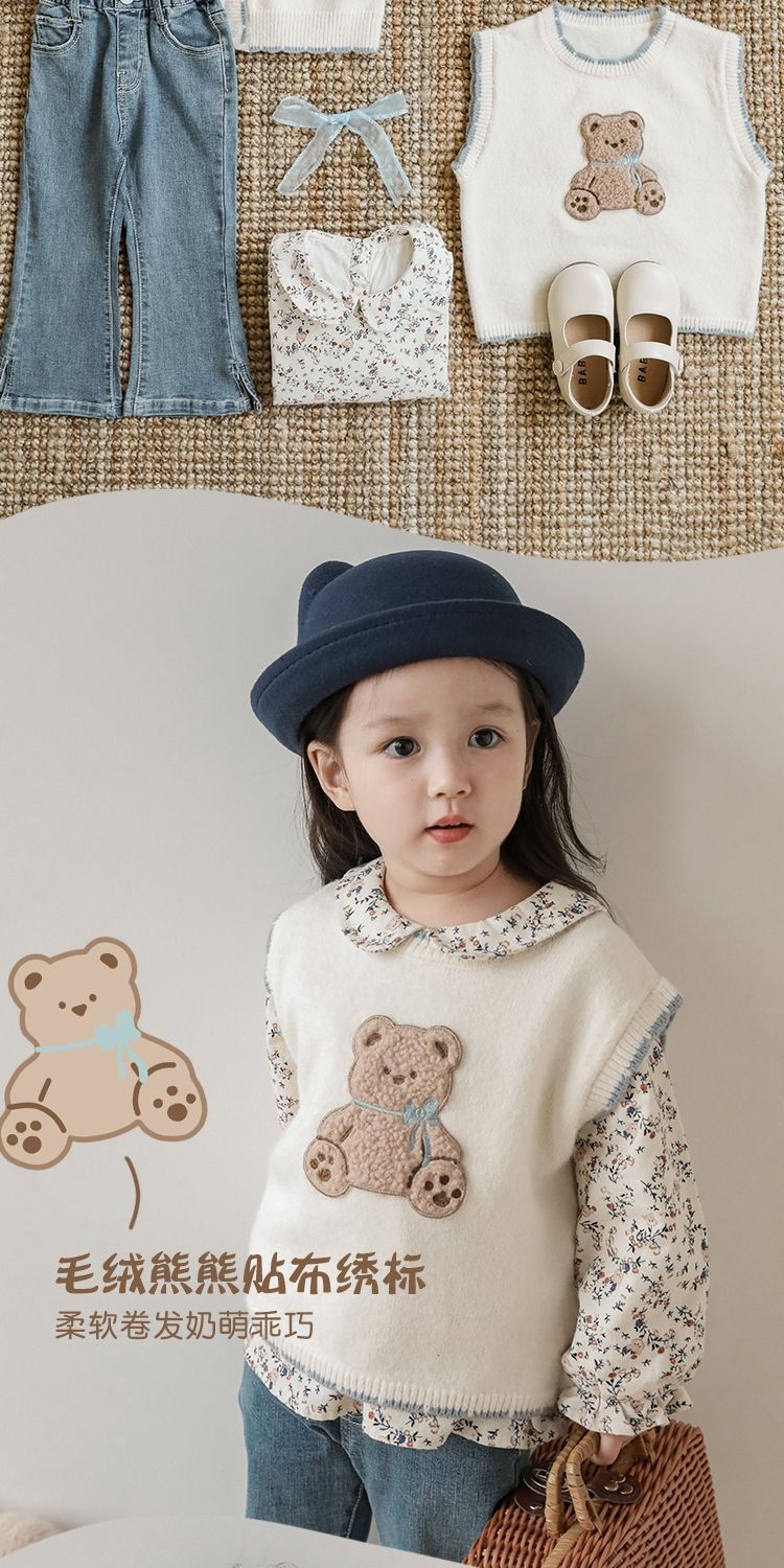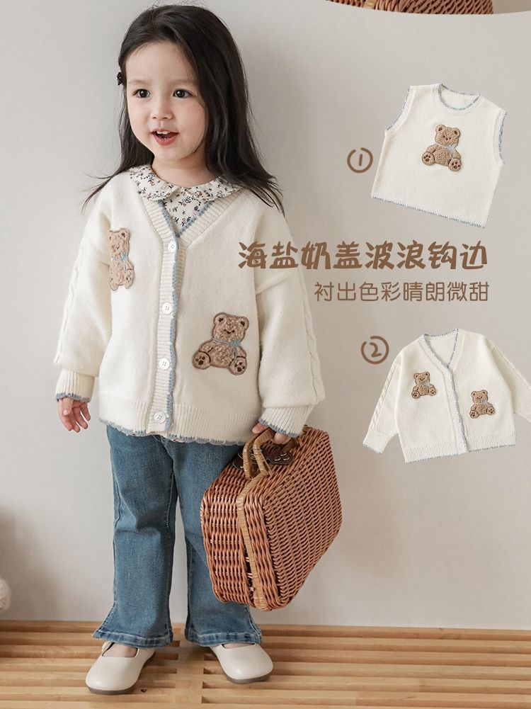 Wulibuyi girl bear patch embroidered vest spring and autumn children s cute contrast color crocheted cardigan sweater