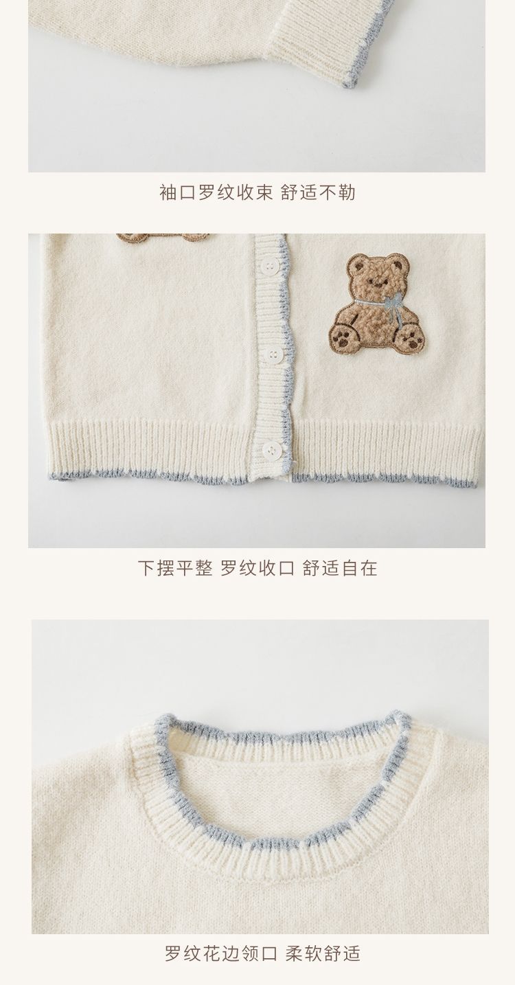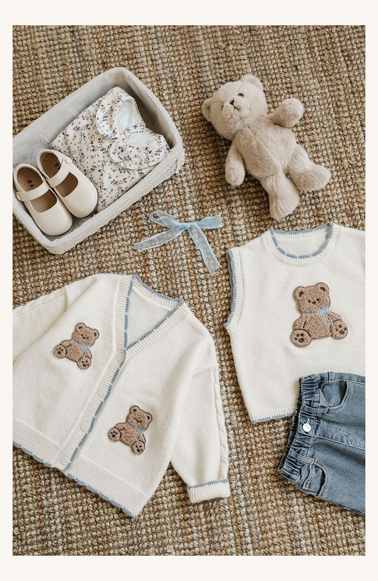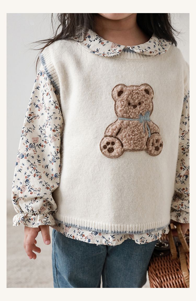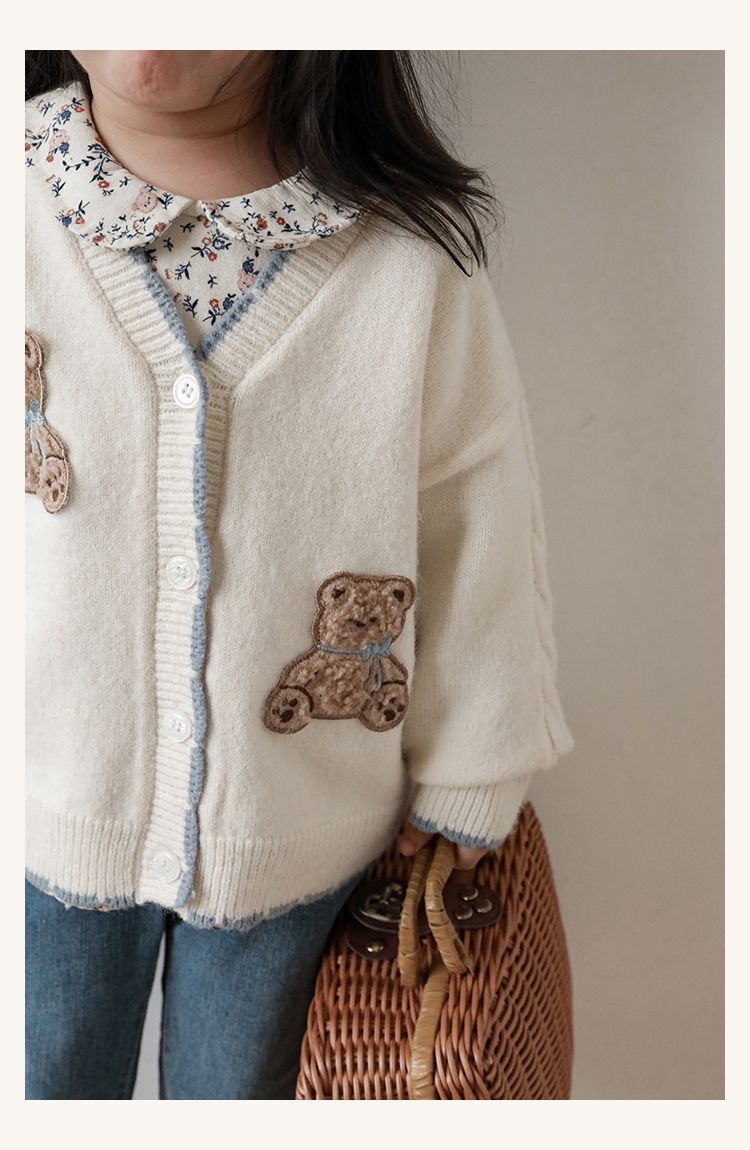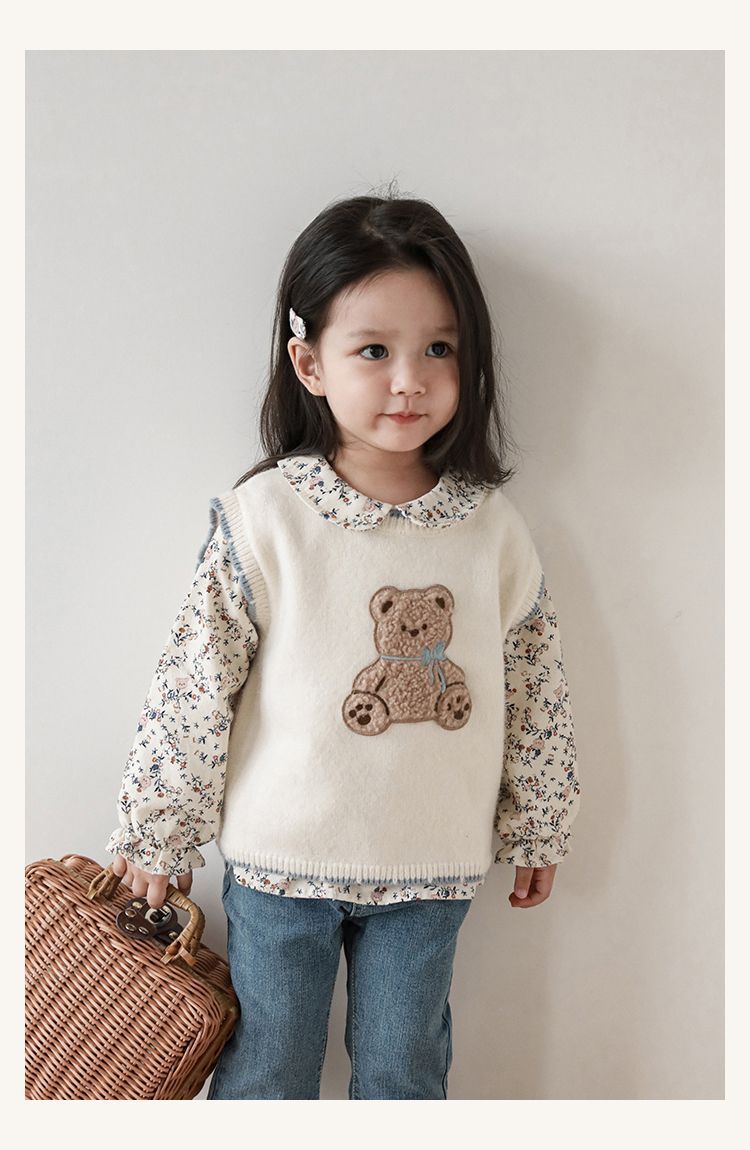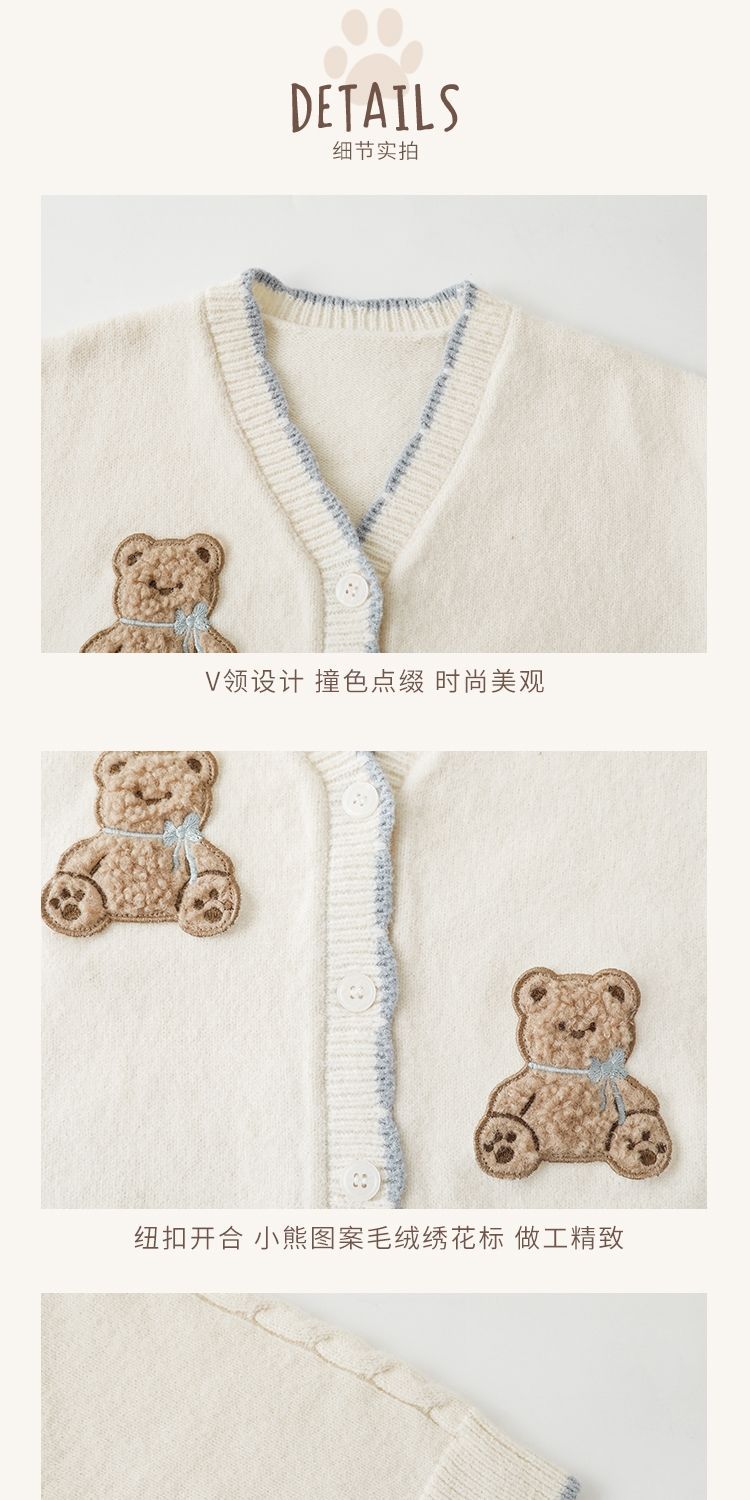 Wulibuyi girl bear patch embroidered vest spring and autumn children s cute contrast color crocheted cardigan sweater