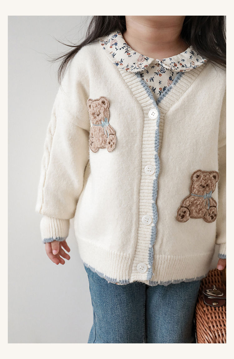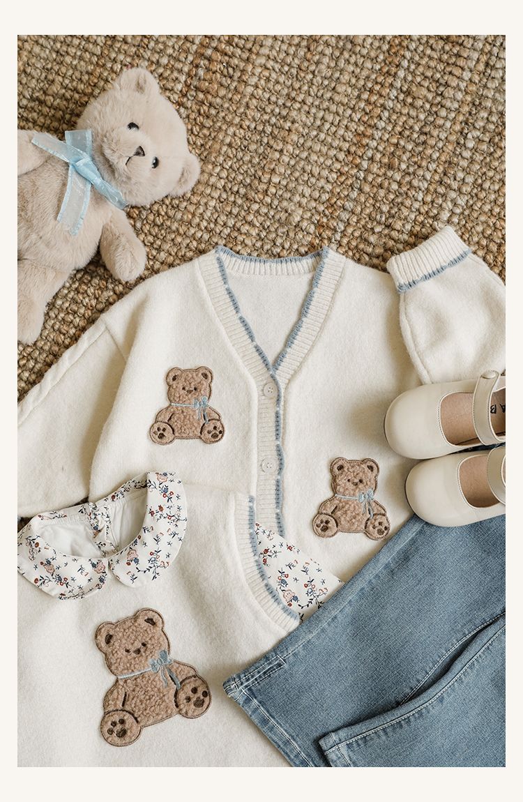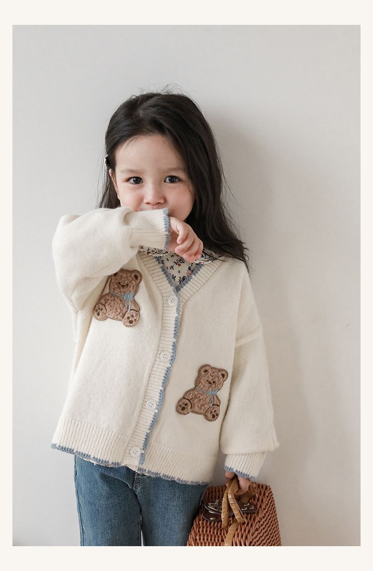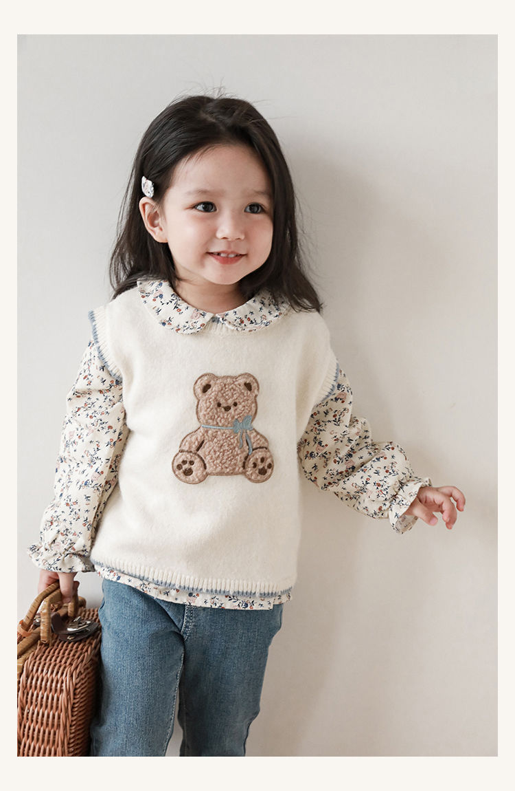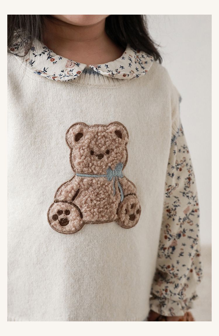 Wulibuyi girl bear patch embroidered vest spring and autumn children s cute contrast color crocheted cardigan sweater