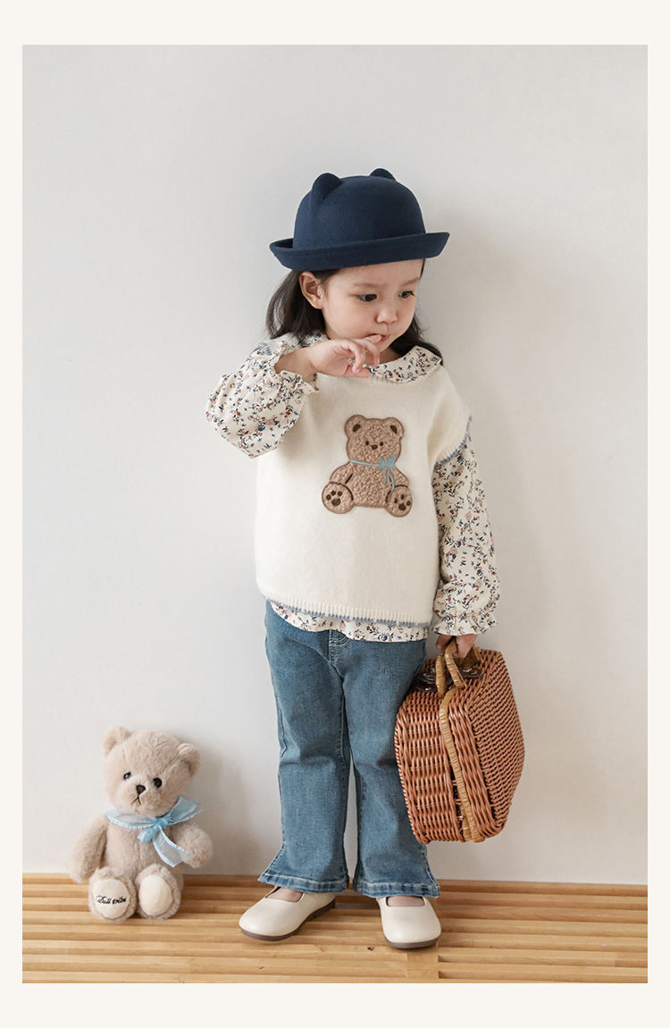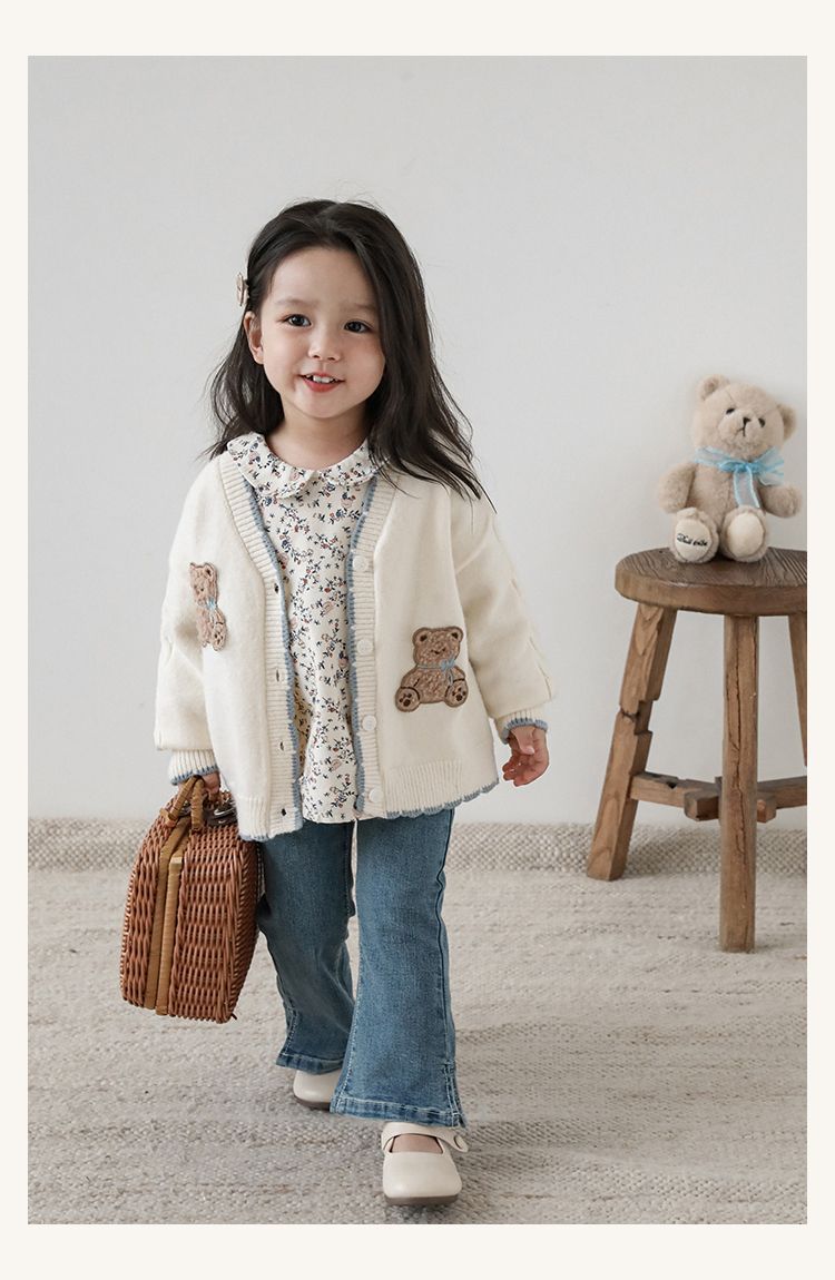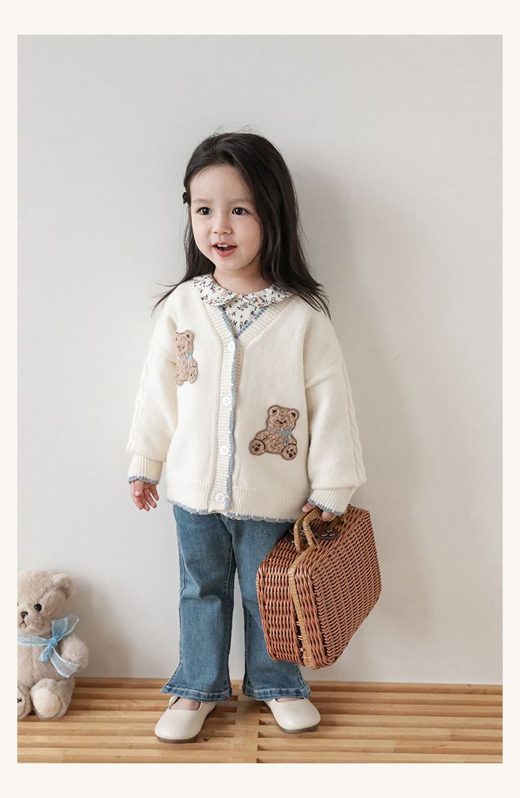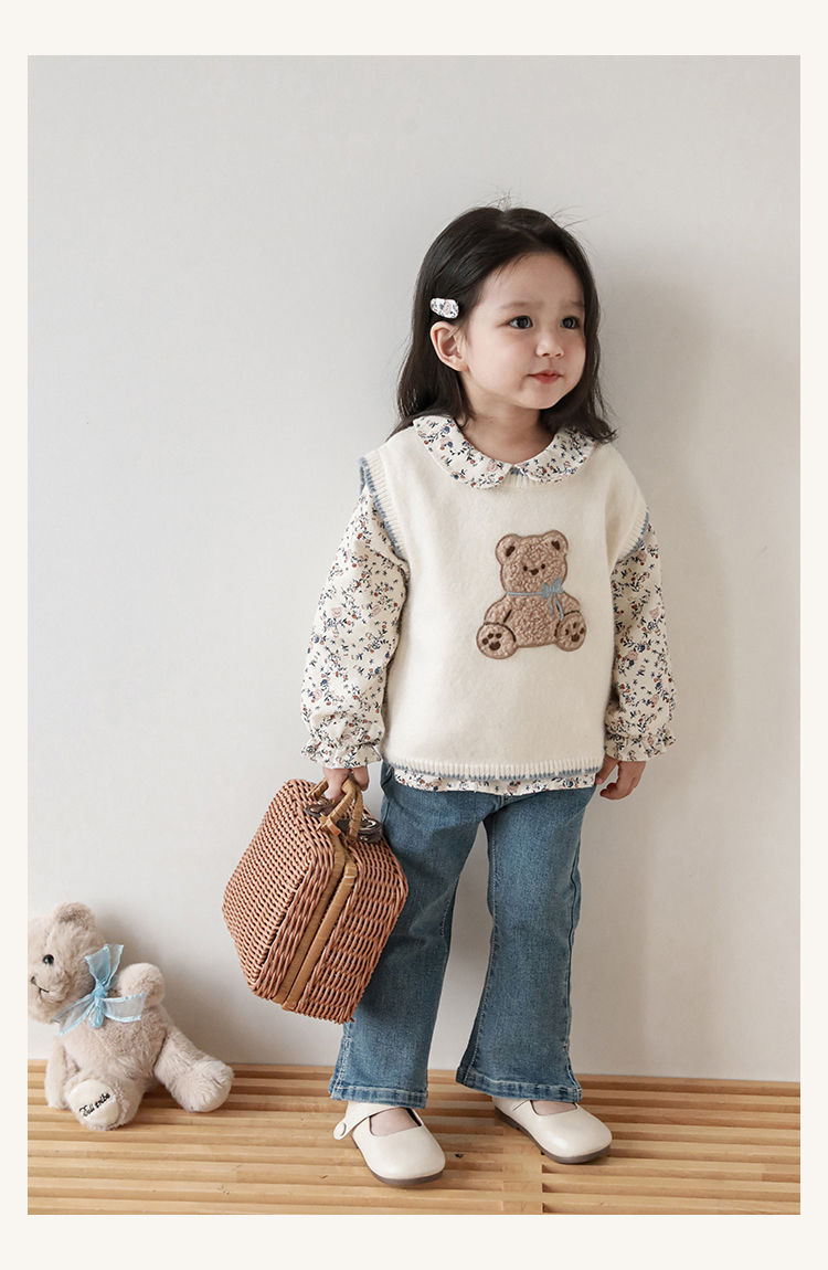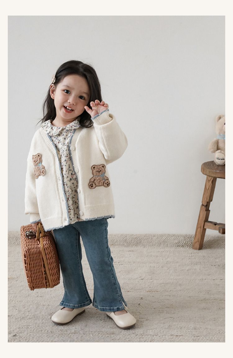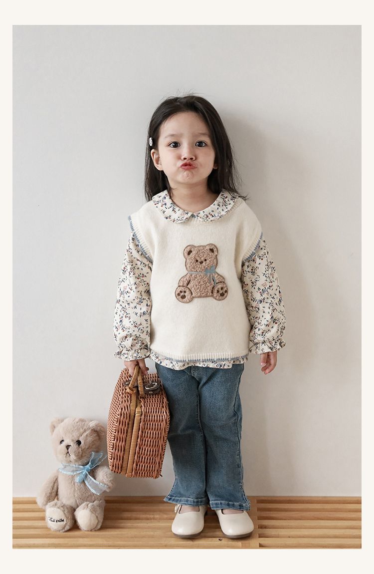 Wulibuyi girl bear patch embroidered vest spring and autumn children s cute contrast color crocheted cardigan sweater