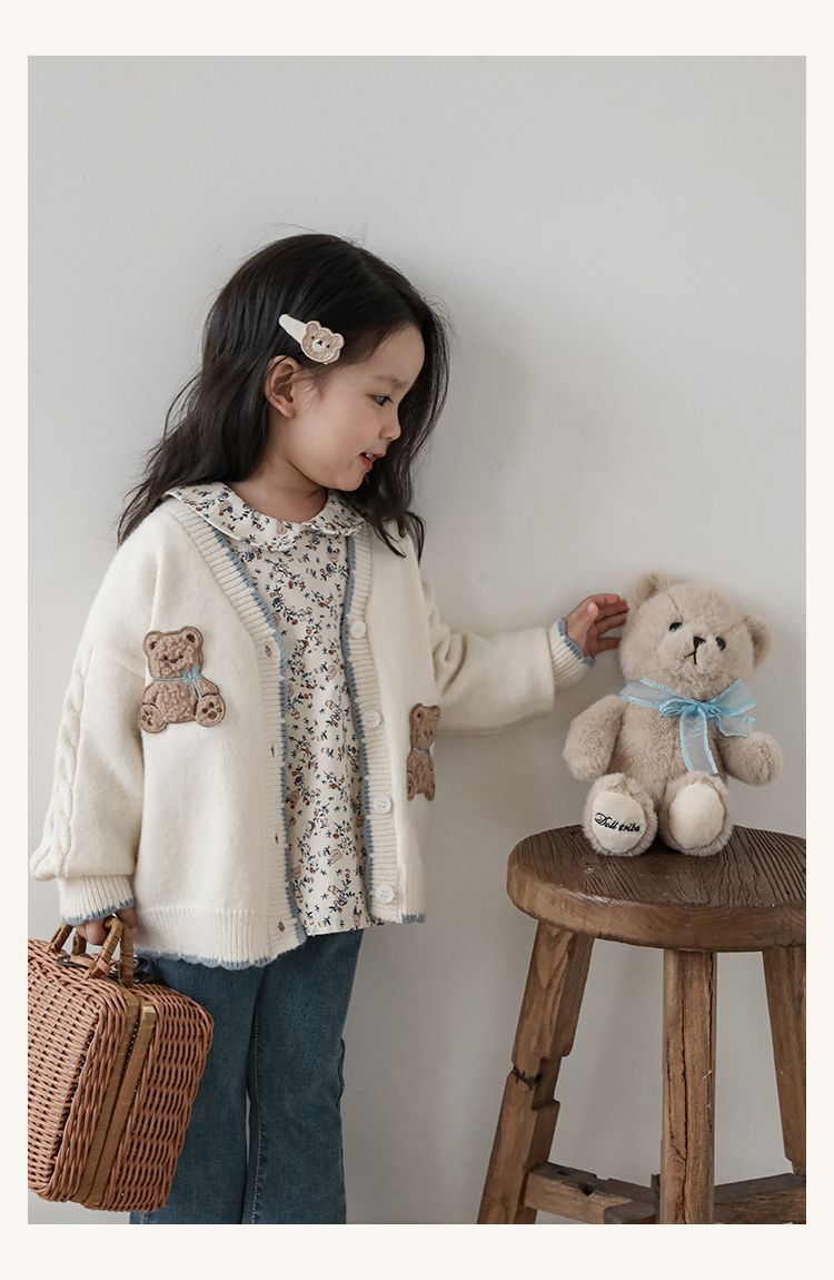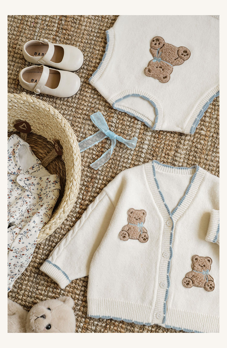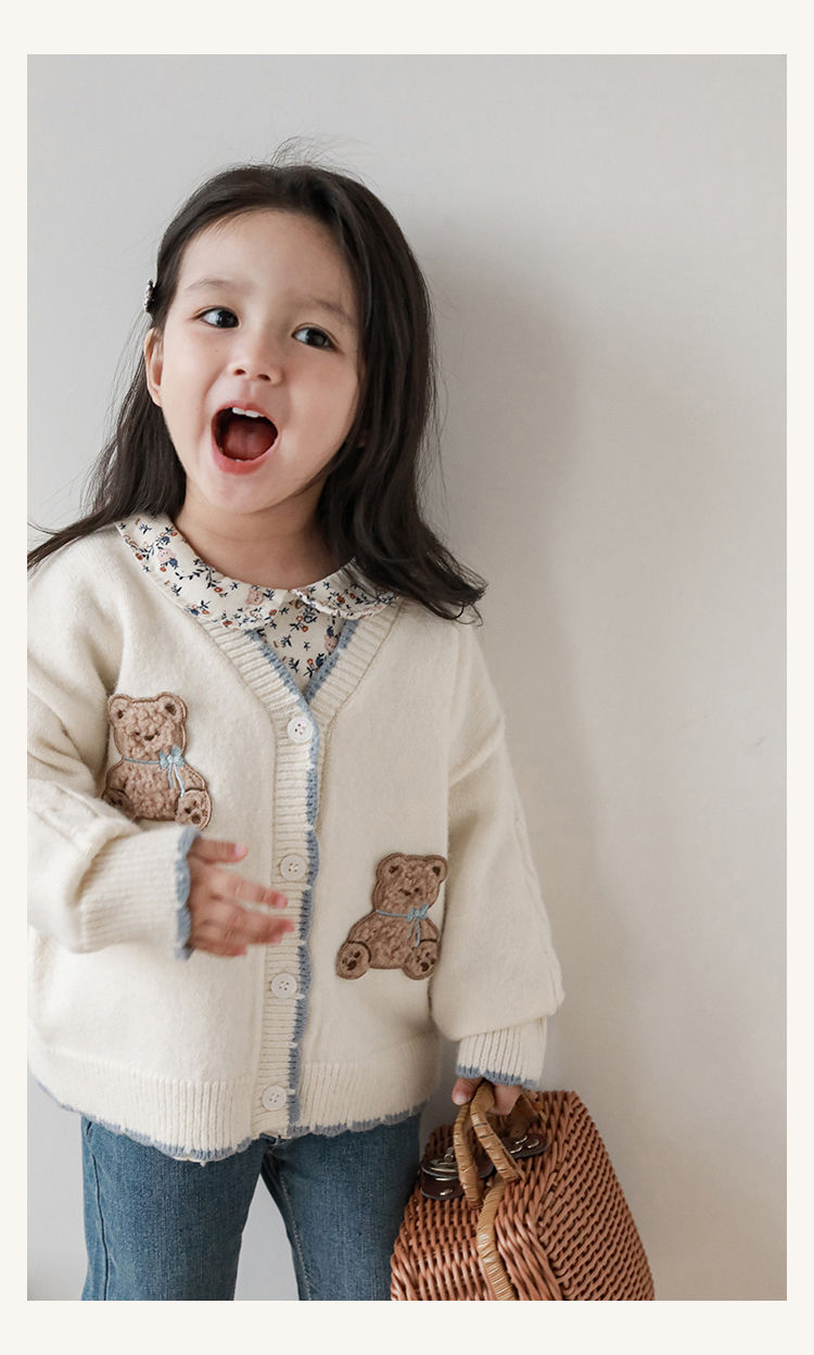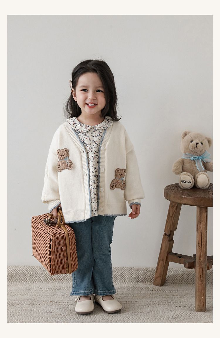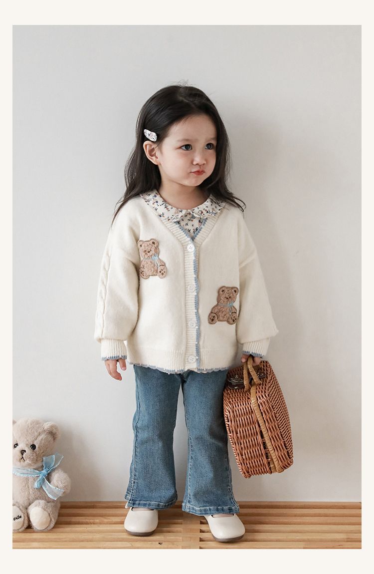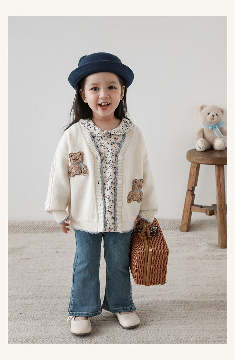 Wulibuyi girl bear patch embroidered vest spring and autumn children s cute contrast color crocheted cardigan sweater