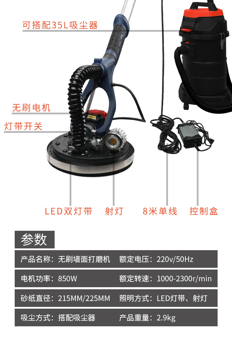 - 2.2 m Spotlight (Brushless Ultra Light) 35L Vacuum Cleaner Single Line Gift Top