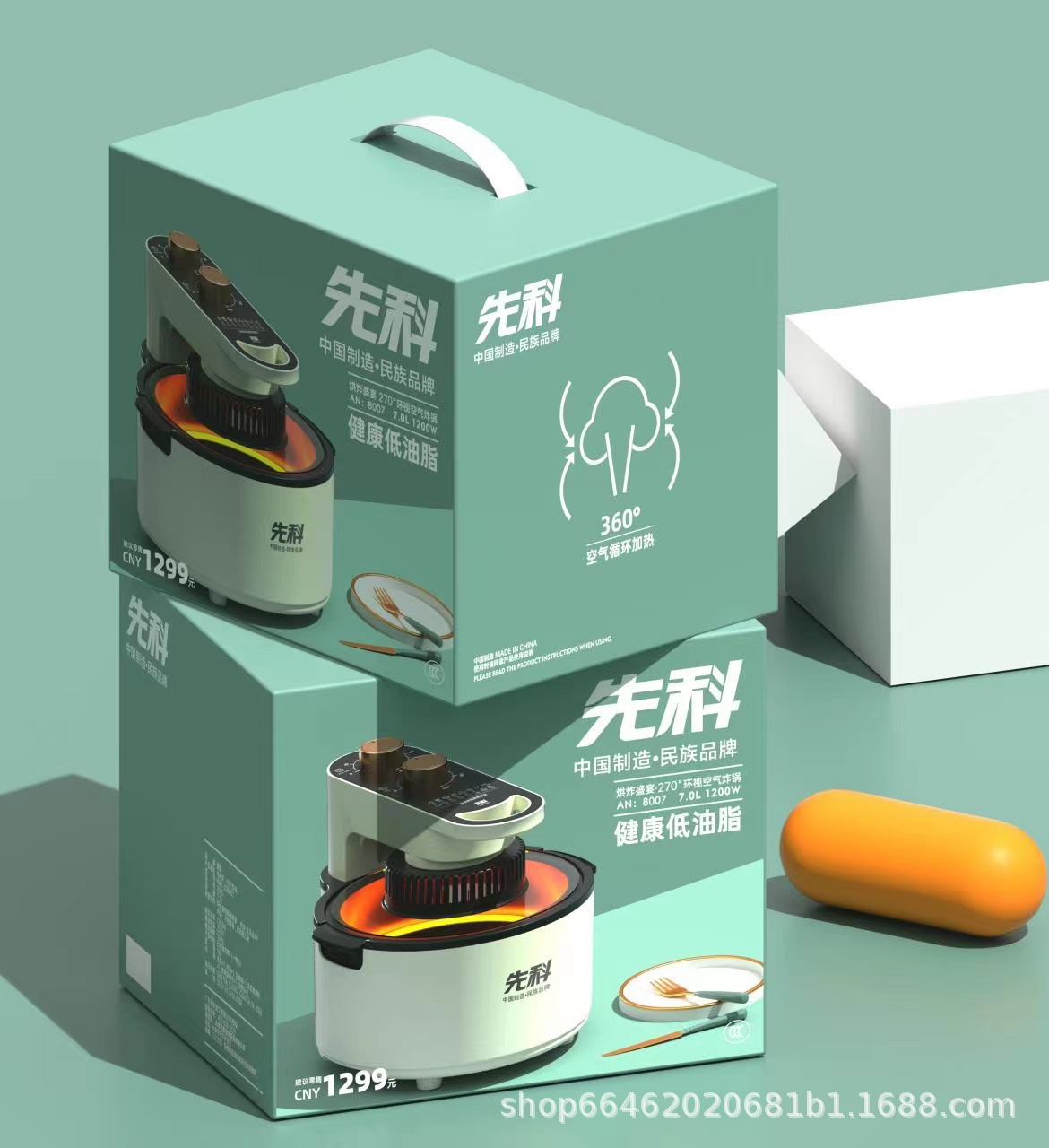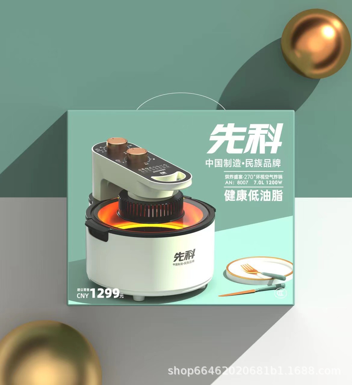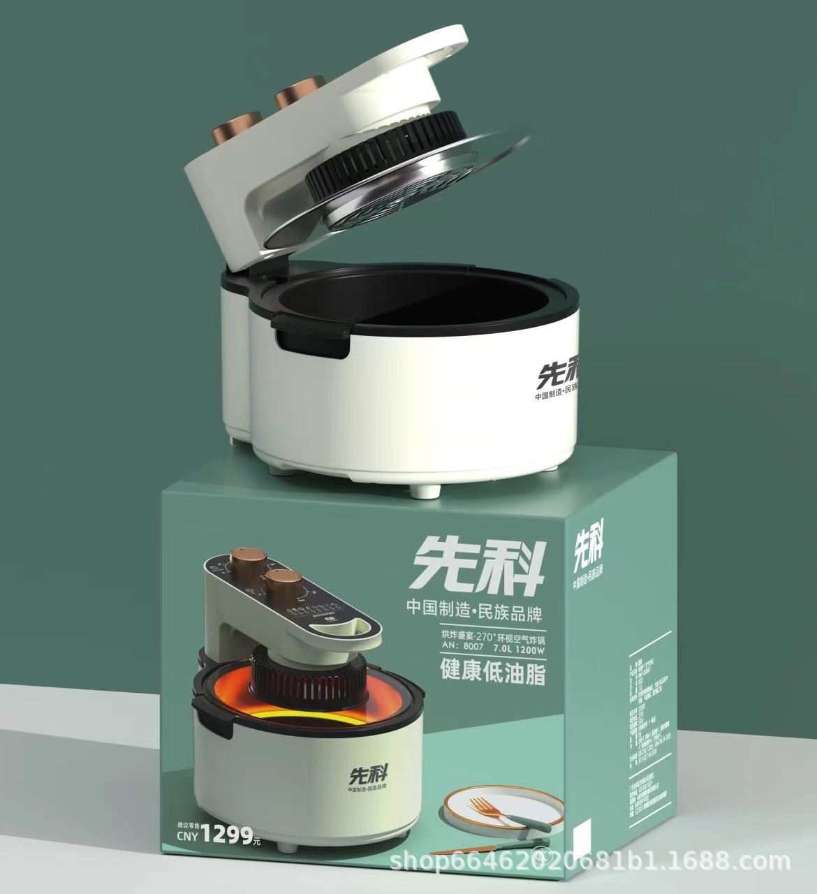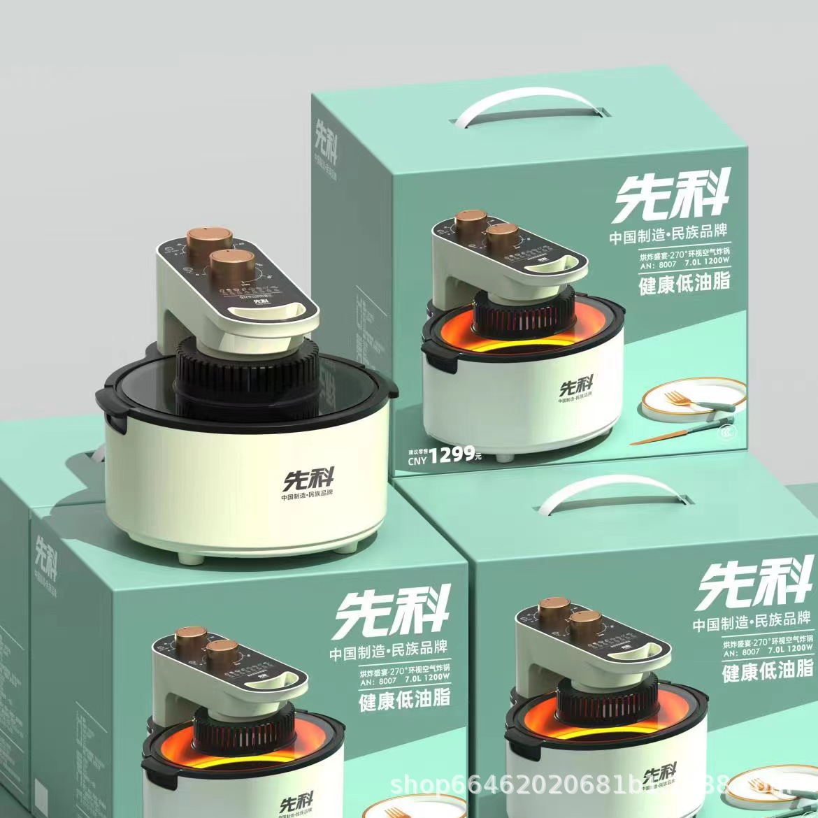 Xianke 270 Surround Air Fryer Transparent Visible Glass Electric Fryer No Oil Smoke 7L Large Capacity Wholesale