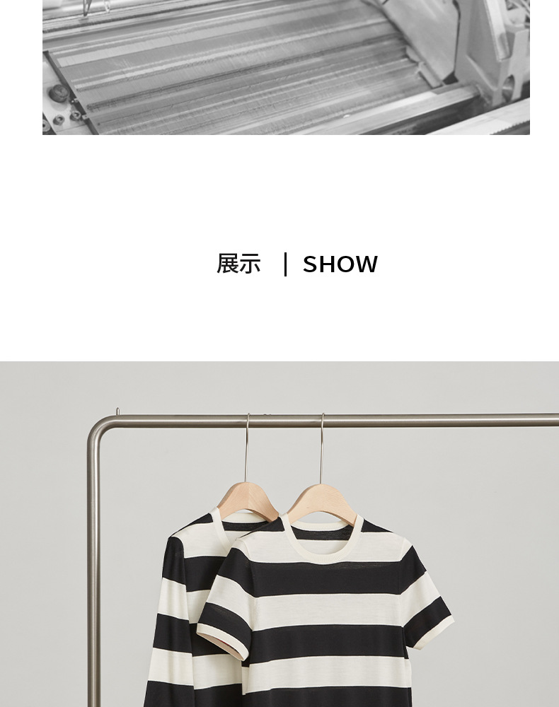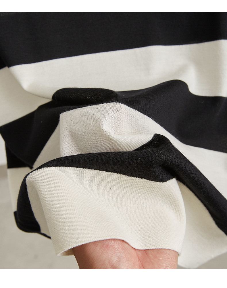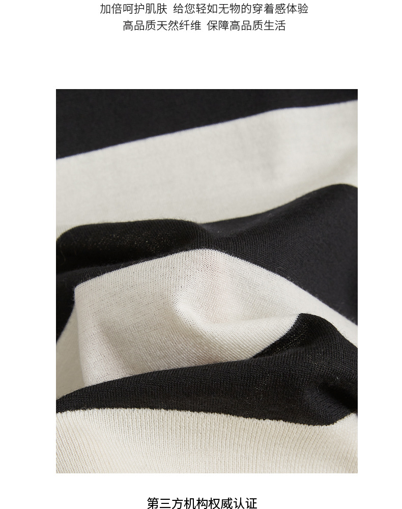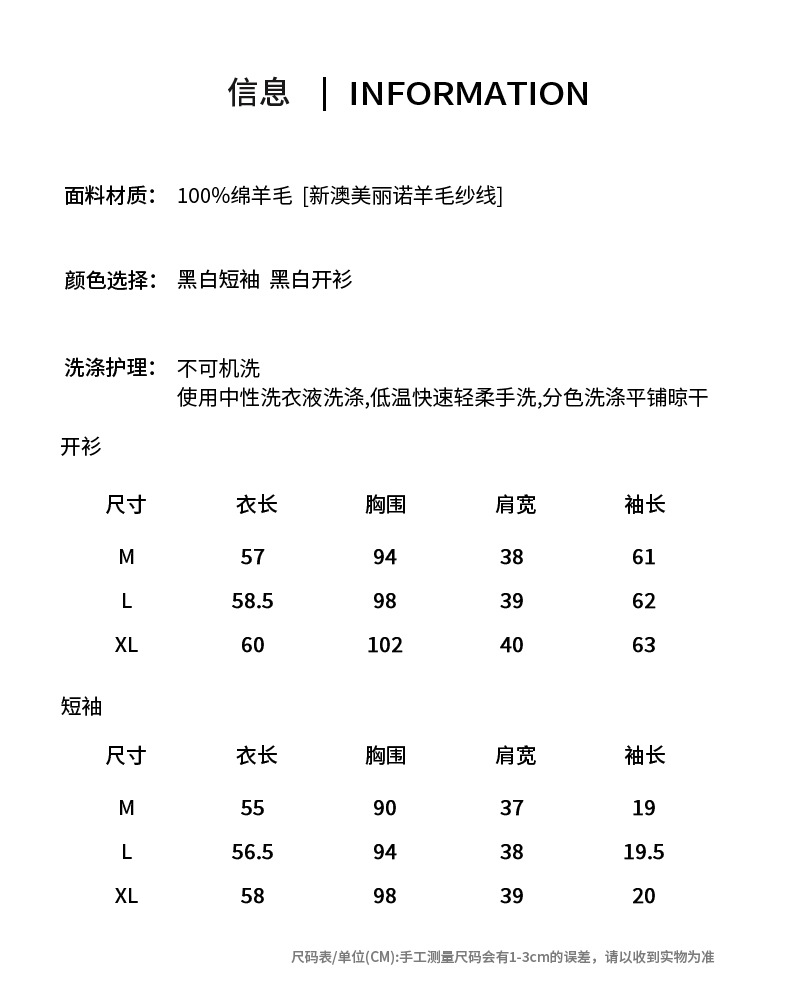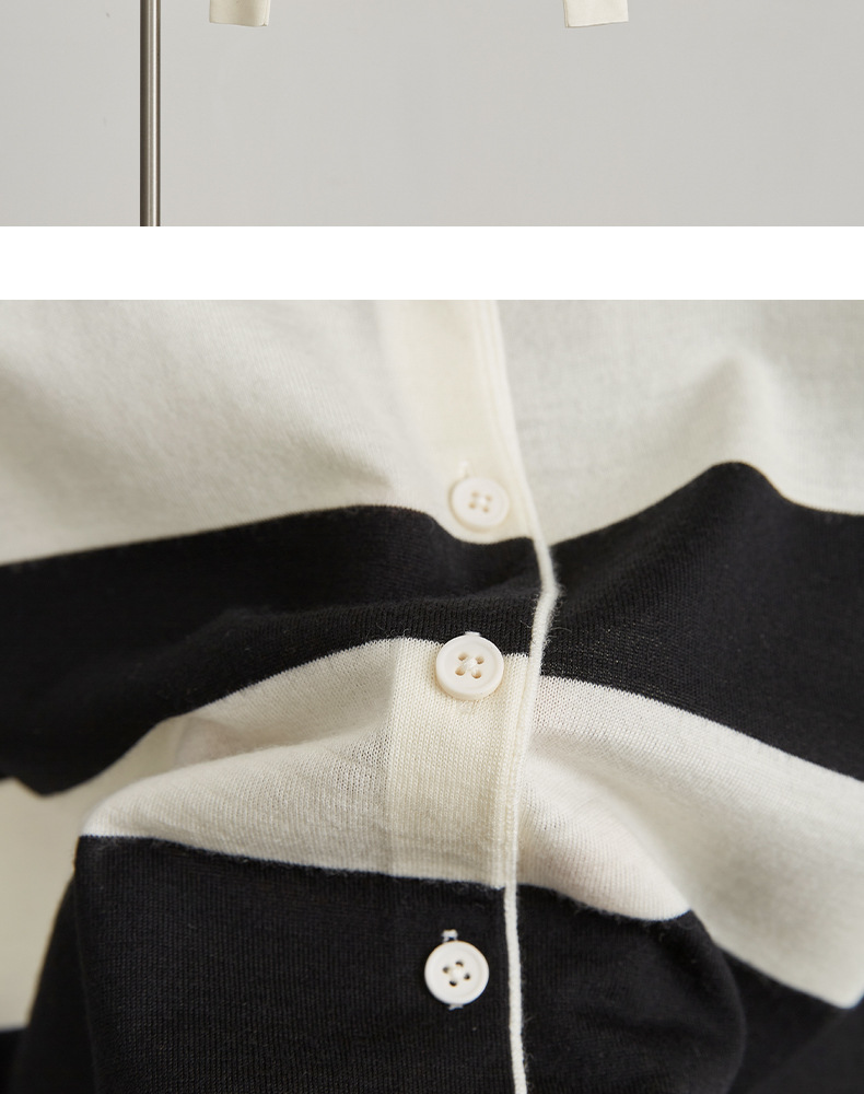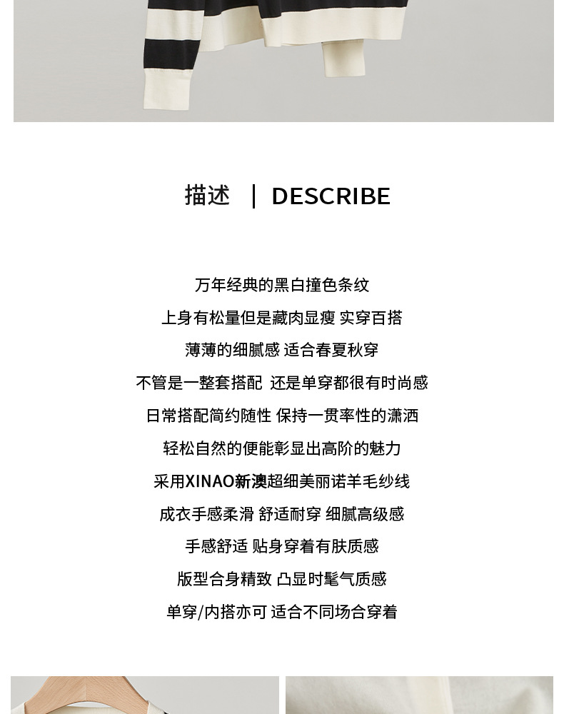 Xinao 100 wool knitted cardigan women s black and white contrast color striped short sleeve elegant temperament casual loose top