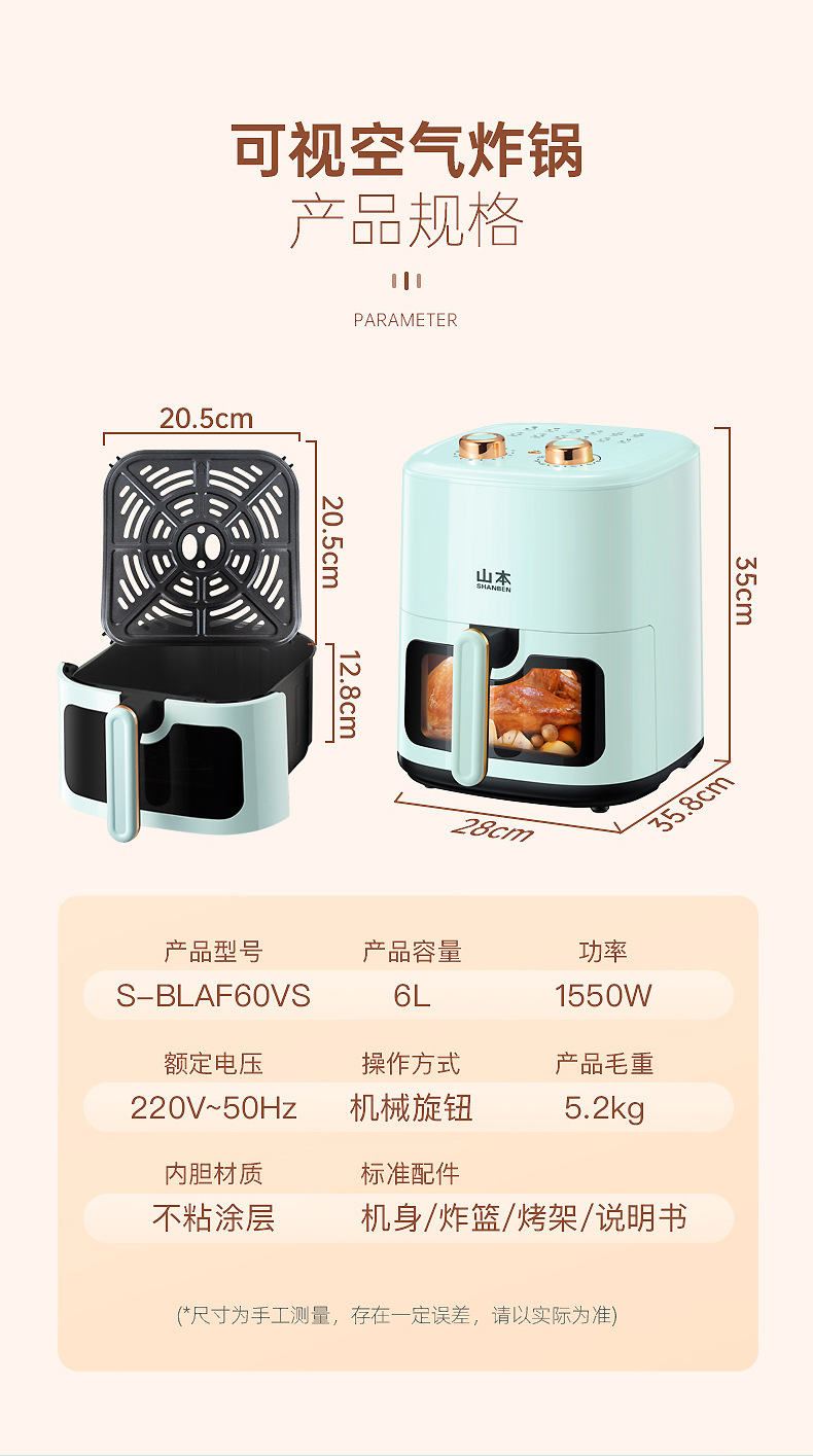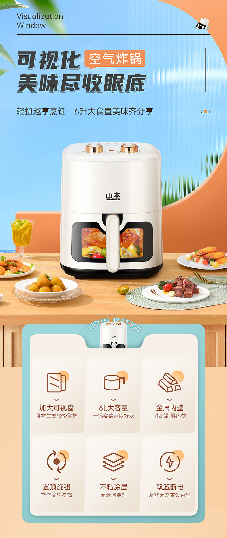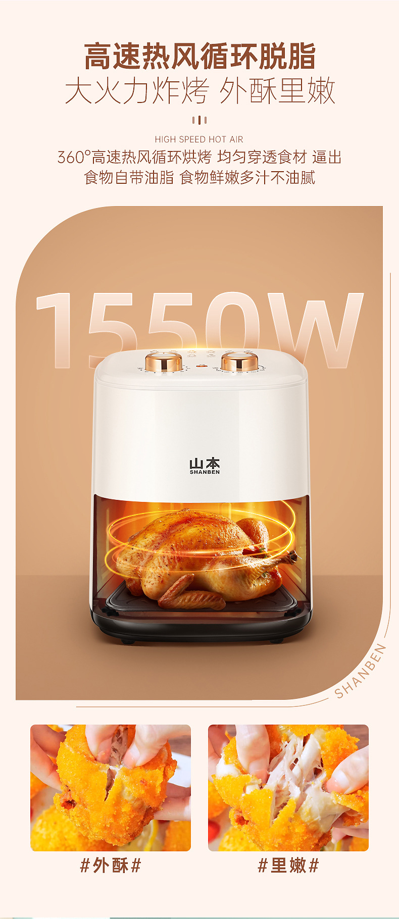 Yamamoto air fryer non-Fryer new electric fryer multi-functional heating mechanical family large capacity 6L