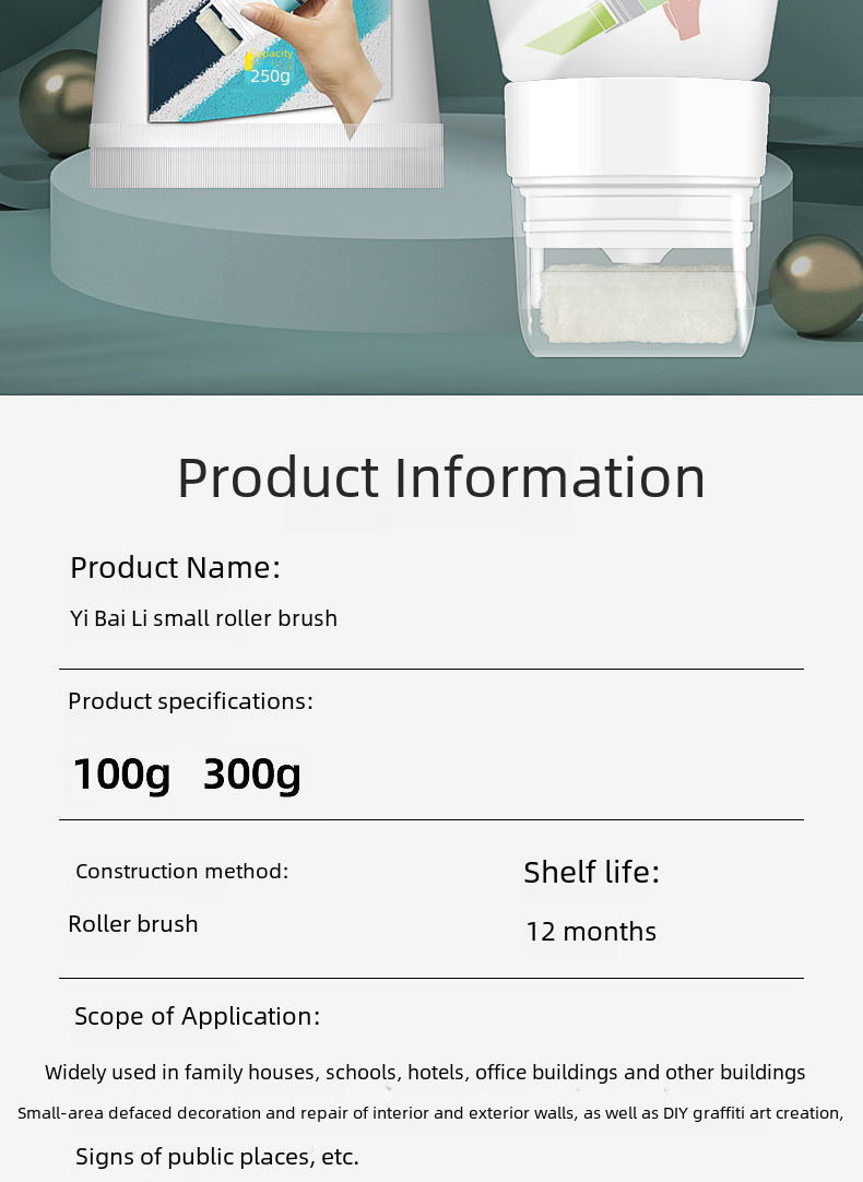 Easy Application:The small roller brush allows for easy application, making it perfect for painting large areas quickly and smoothly.