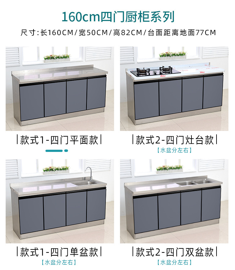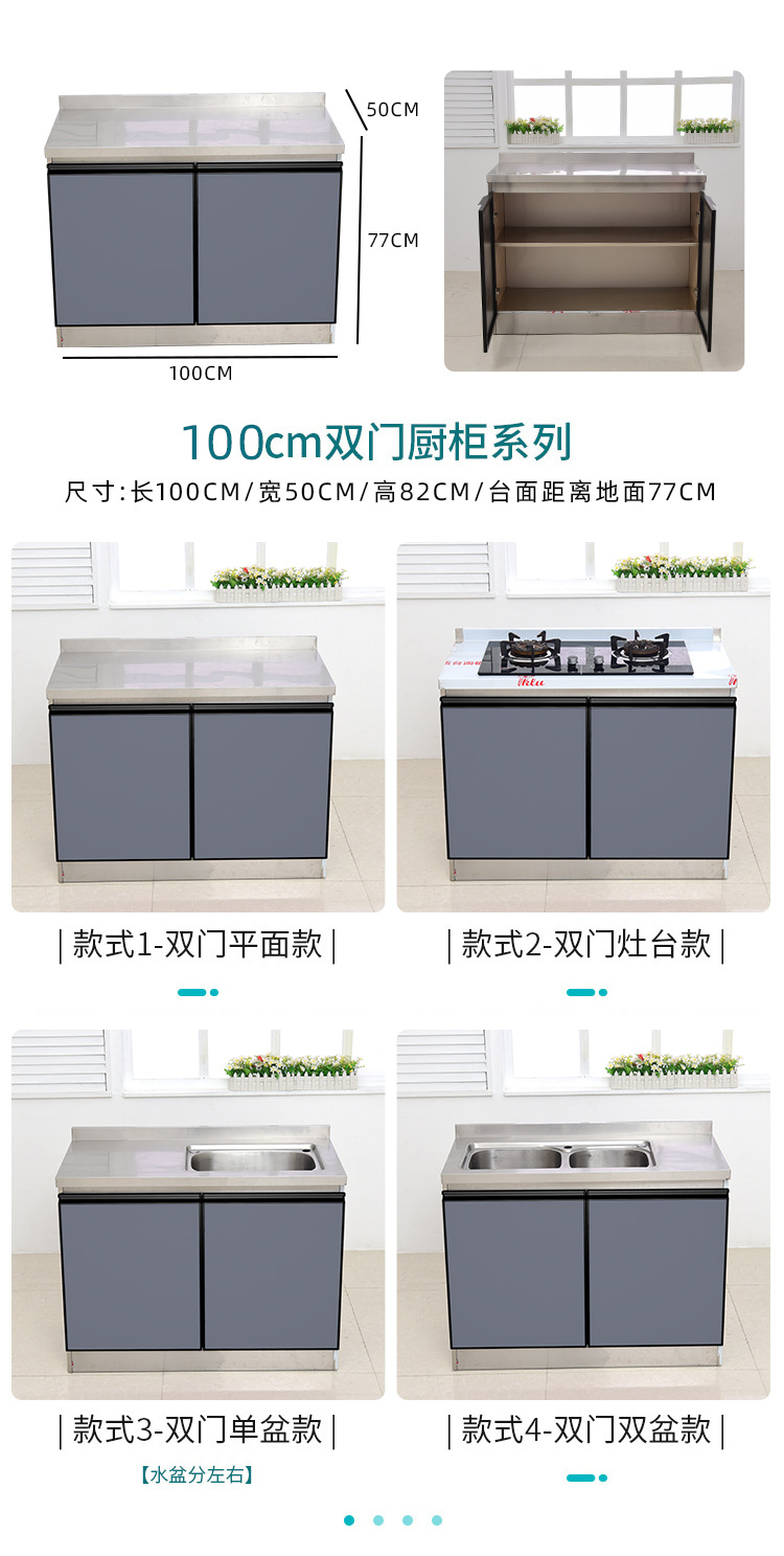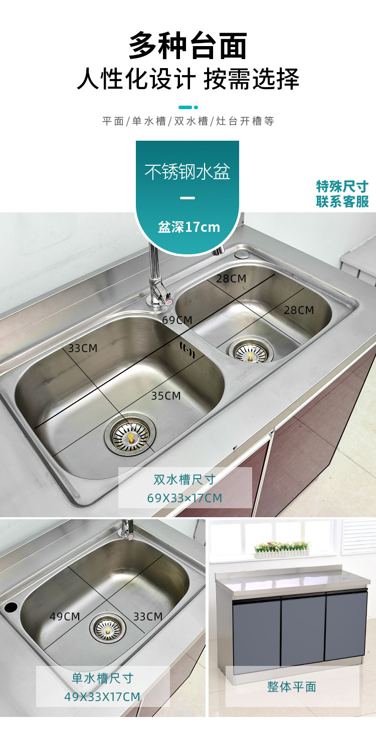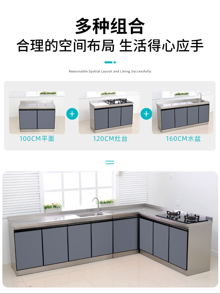 Z1T Simple Kitchen Cabinet Small Apartment Stove Cabinet Combination Economical Stainless Steel Rural Integral Simple Sink