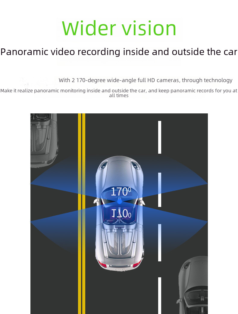 Dual Lens Design:The Z30 Dash Cam features a dual lens design, providing a wide angle view of 360°, ensuring comprehensive coverage of your surrounding environment.