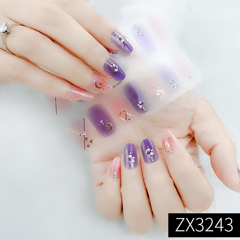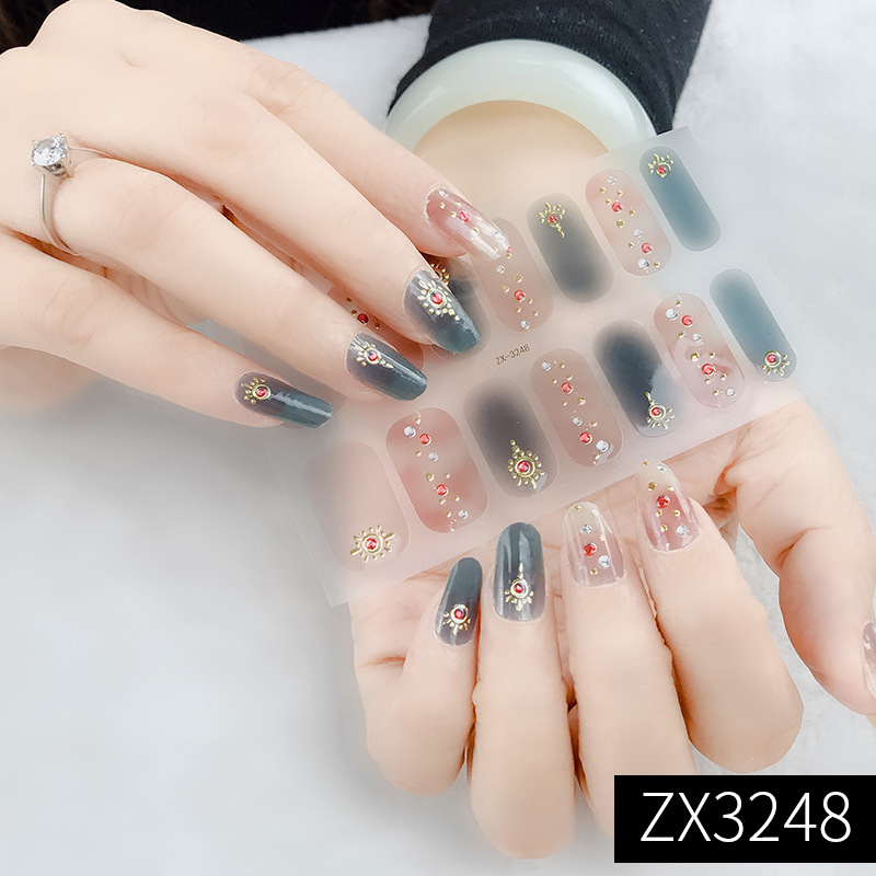ZX Stereo Waterproof No Baking Gel Nail Polish Film Full Sticker Simple Style Advanced Manicure Film Paper Nail Sticker Wholesale