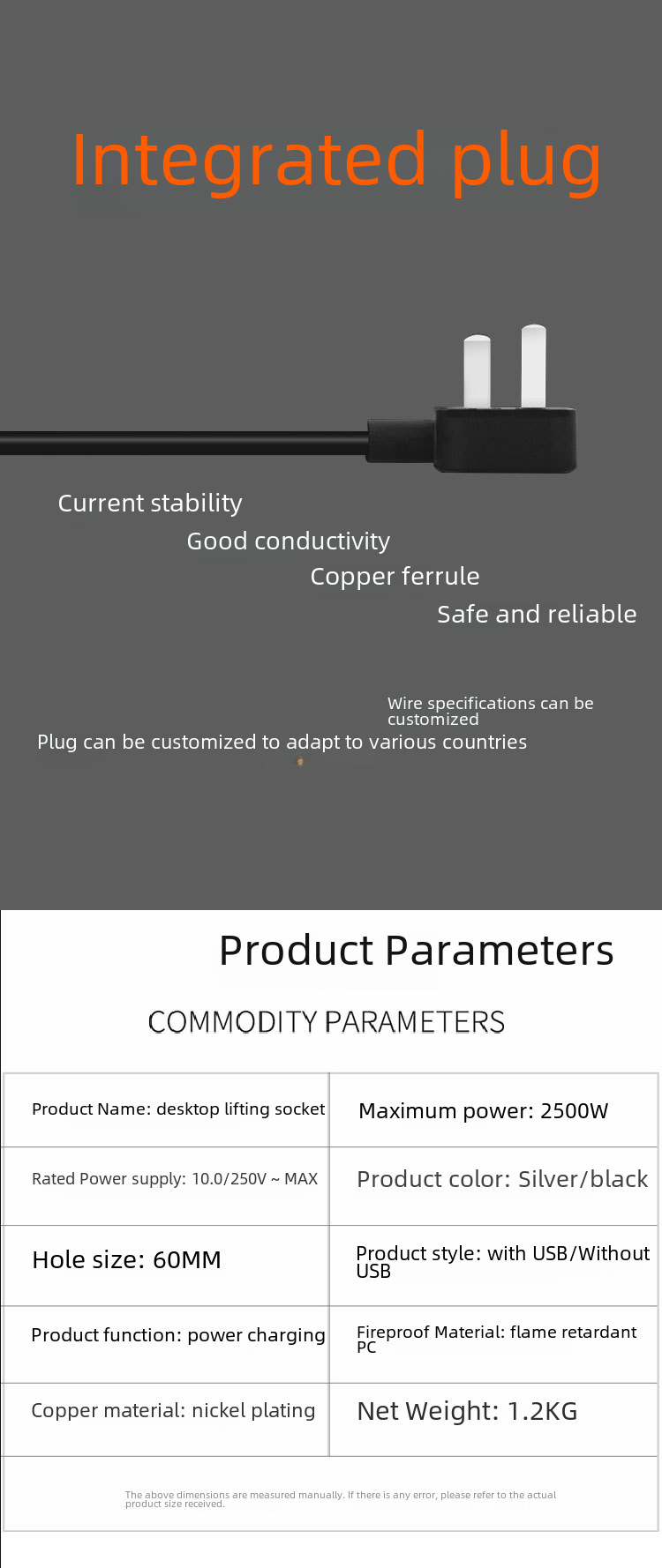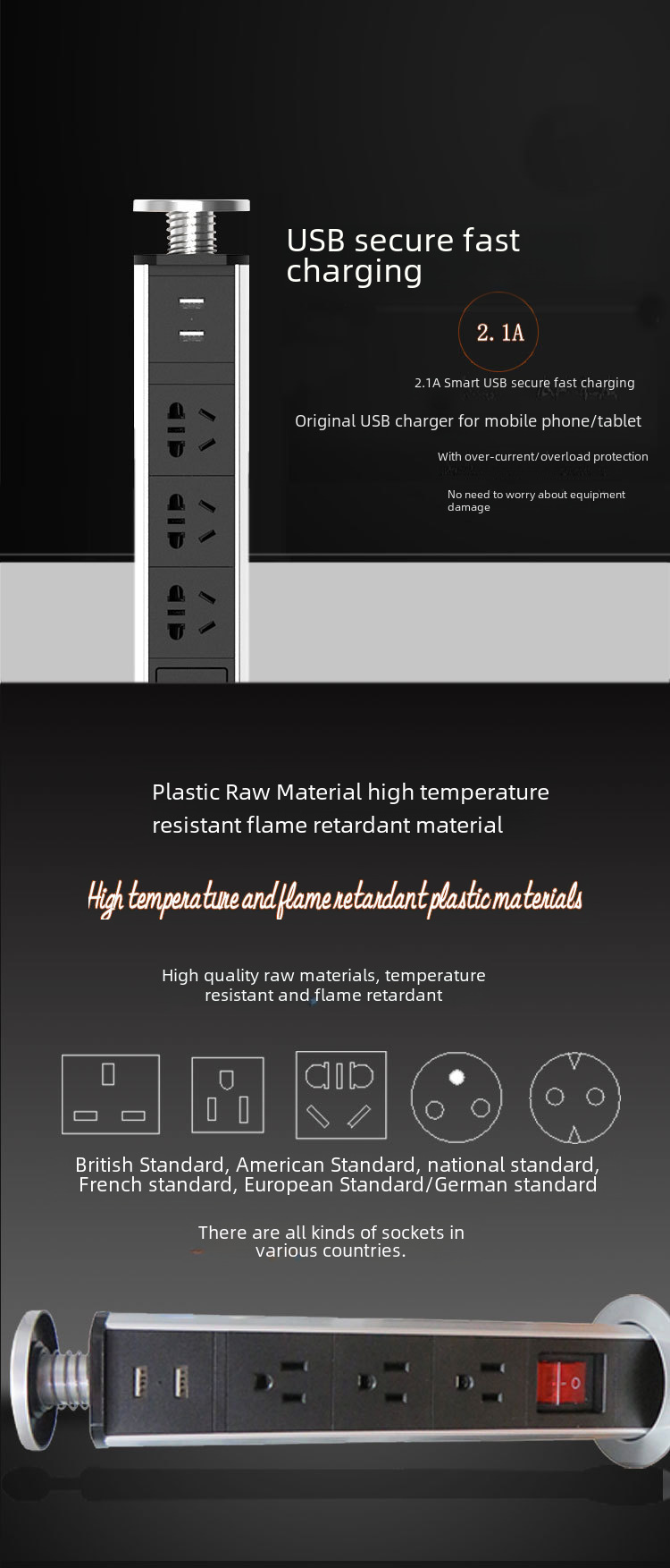 Zhan Gong Mei Standard with USB switch opening 80 desktop lifting socket lifting pull out overload protection plug in