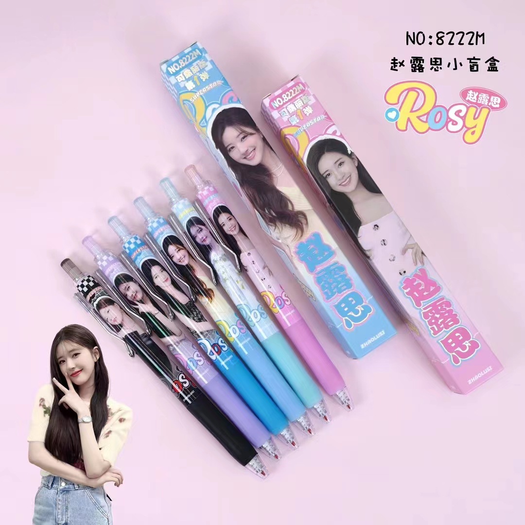 Zhao Lusi Star Idol Blind Box Pen Writing Smooth Water resistant Ink Plastic Press Gel Pen 0.5 Black
