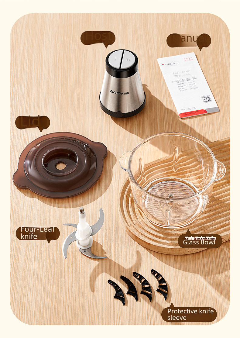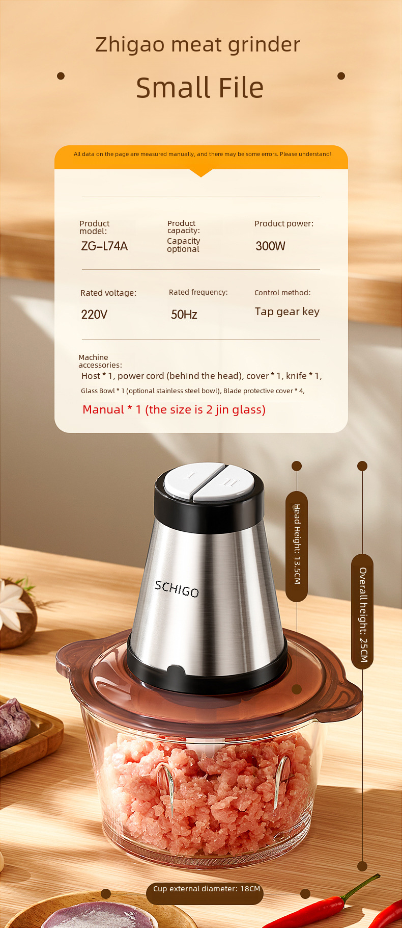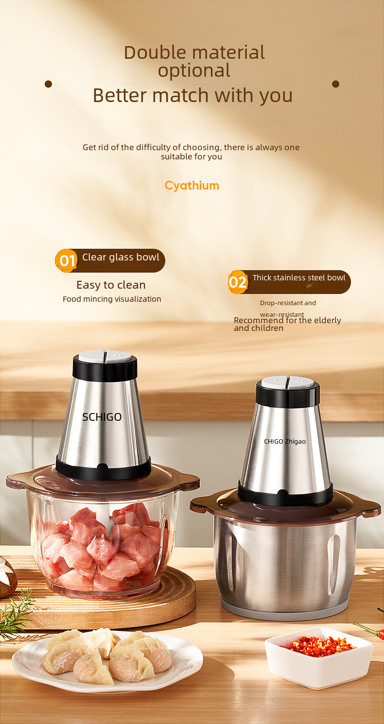 Zhigao meat grinder household electric stainless steel stuffing shredder meat shredder small garlic paste chili material Machine