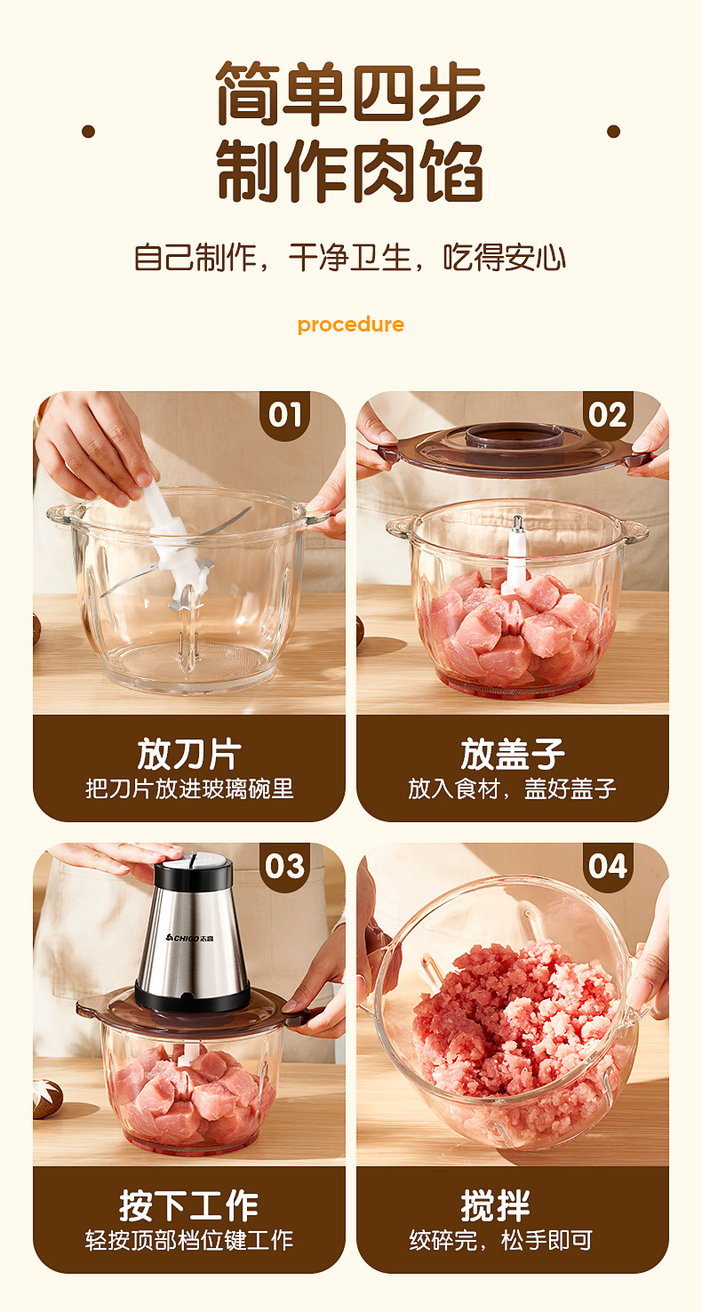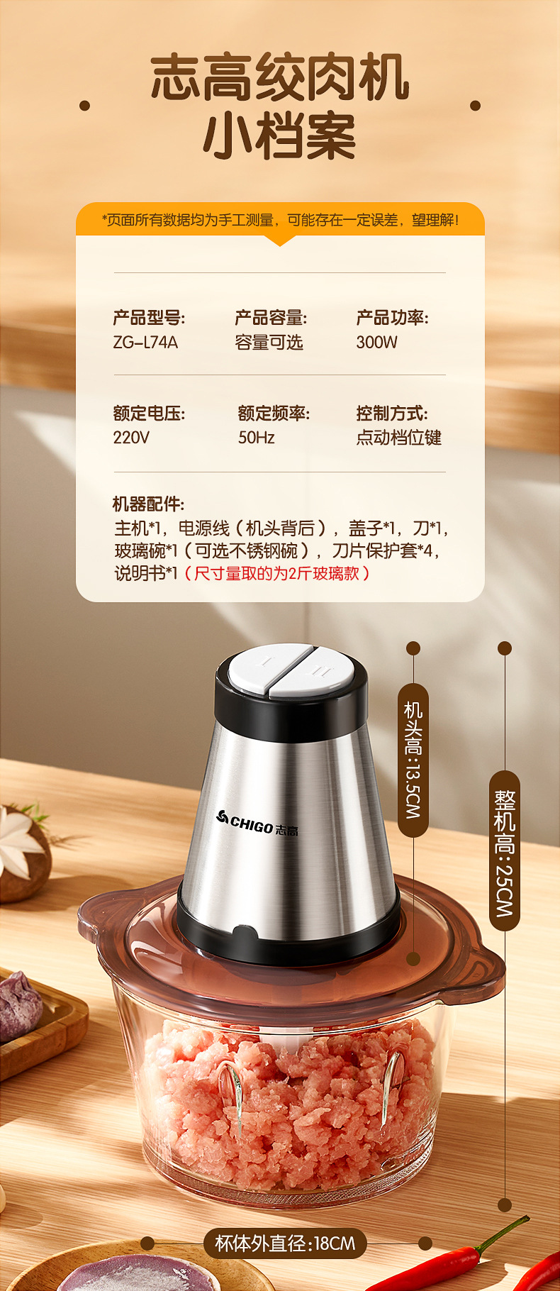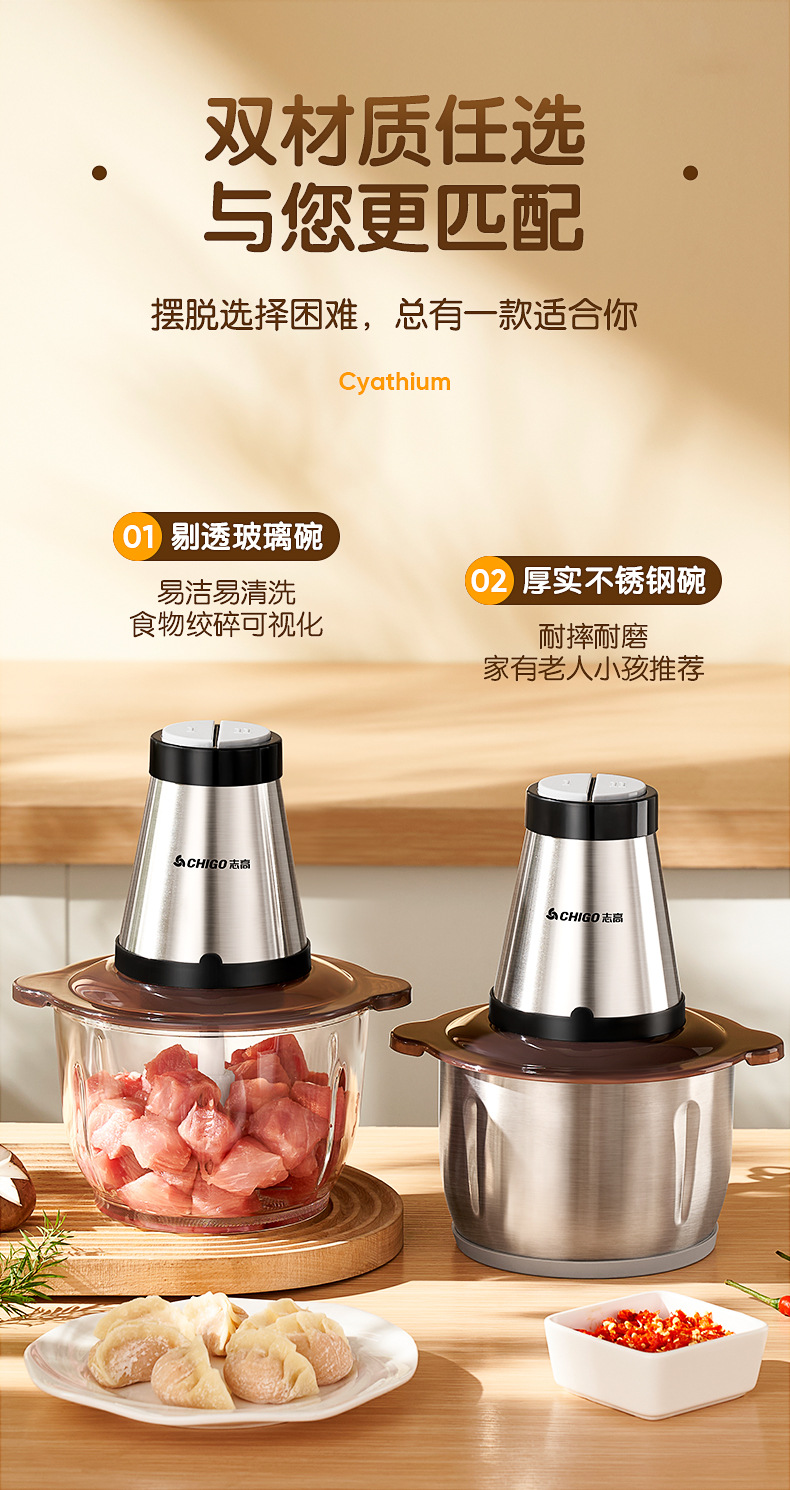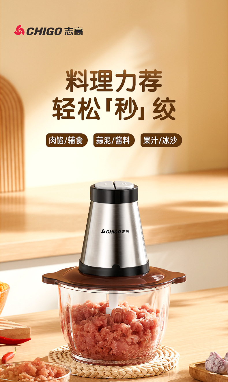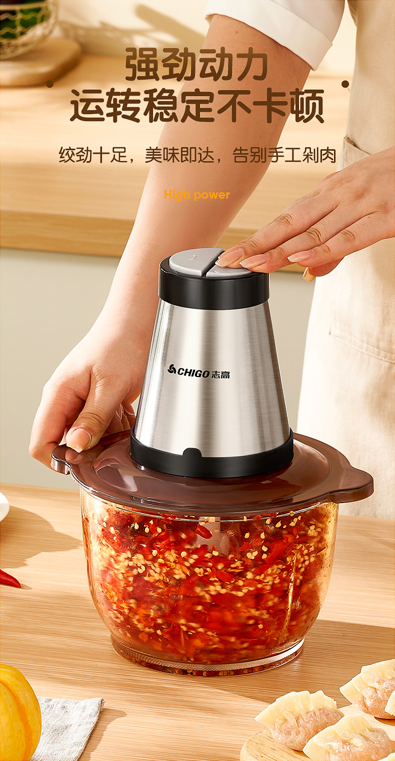 Zhigao meat grinder household electric stainless steel stuffing shredder meat shredder small garlic paste chili material Machine