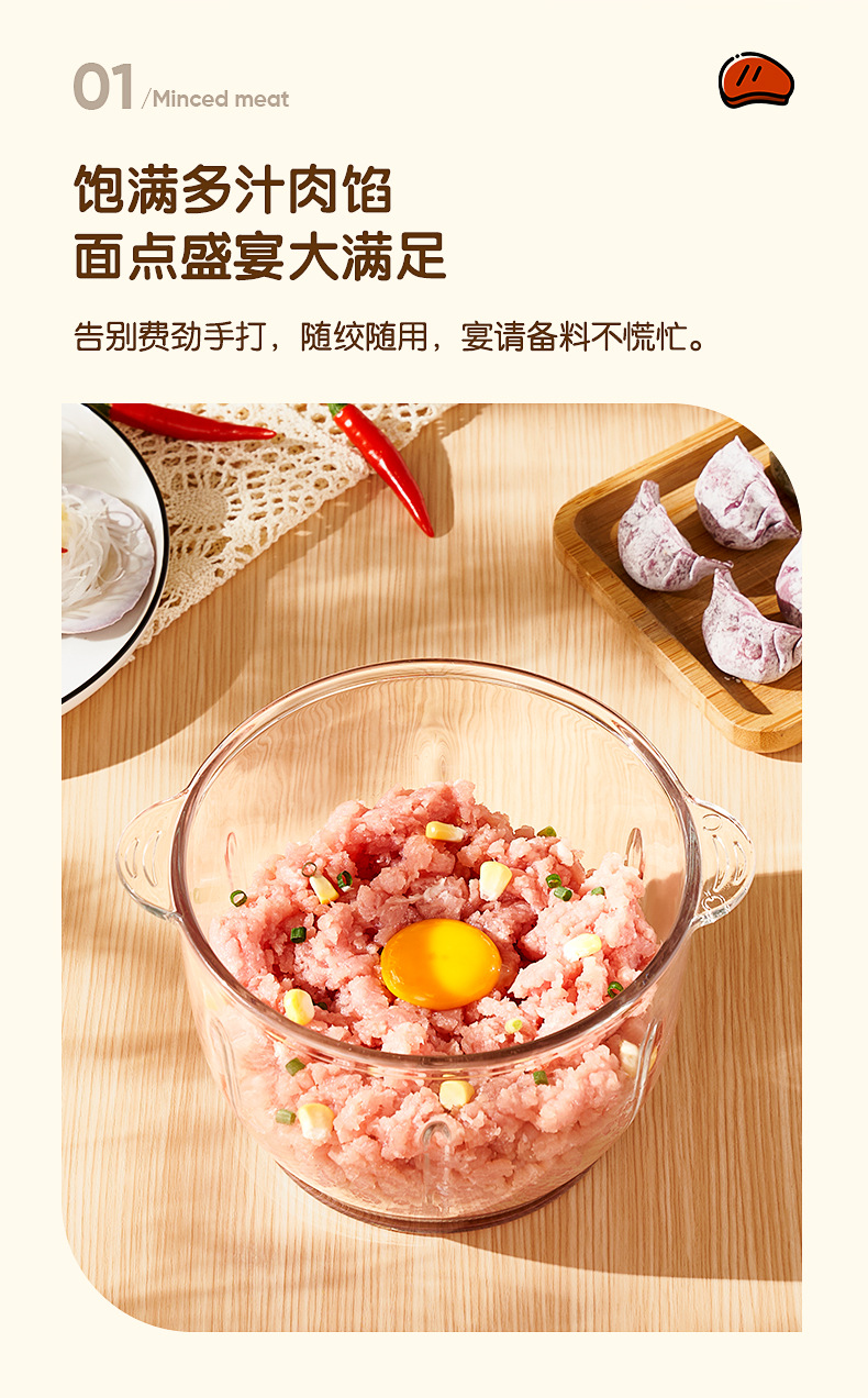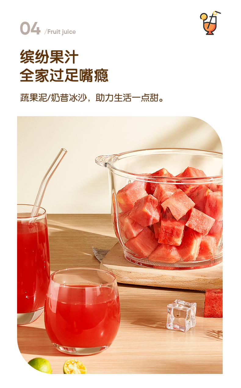 - Thickened single-blade glass bowl 1.2 liters capacity