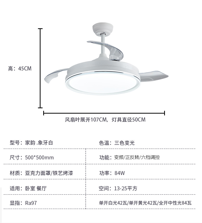 - Fan light [three-color light changing] [full spectrum eye protection]]