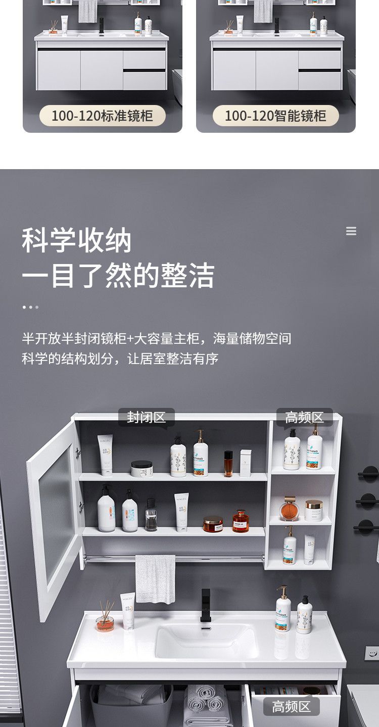 - Black and white smart towel bar mirror cabinet -110cm full set of accessories ceramic integrated basin