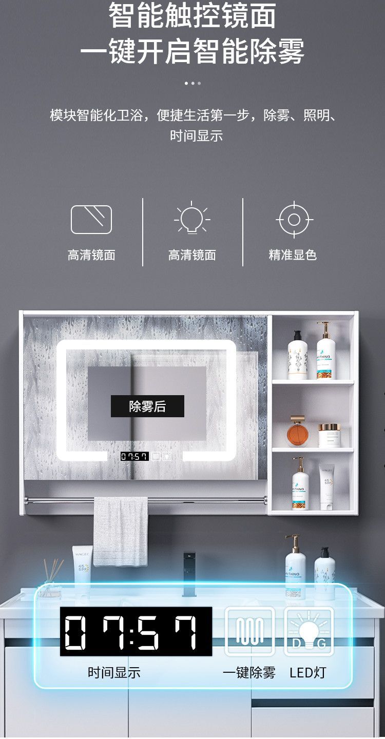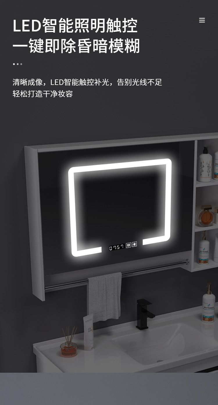 - Black and white smart towel bar mirror cabinet -80cm full set of accessories ceramic integrated basin