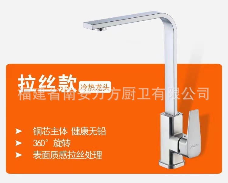 Zinc alloy square flat tube square seven shaped kitchen hot and cold faucet dish sink sink sink faucet