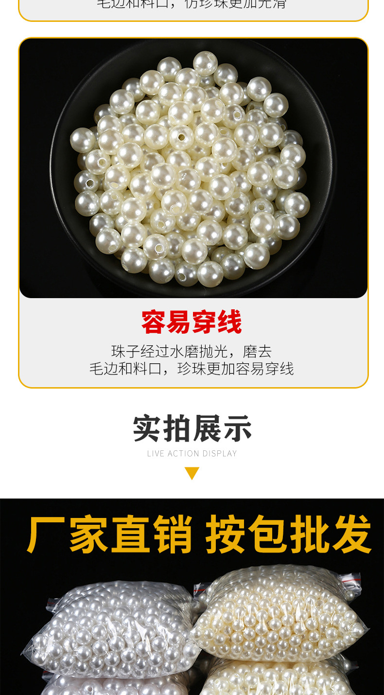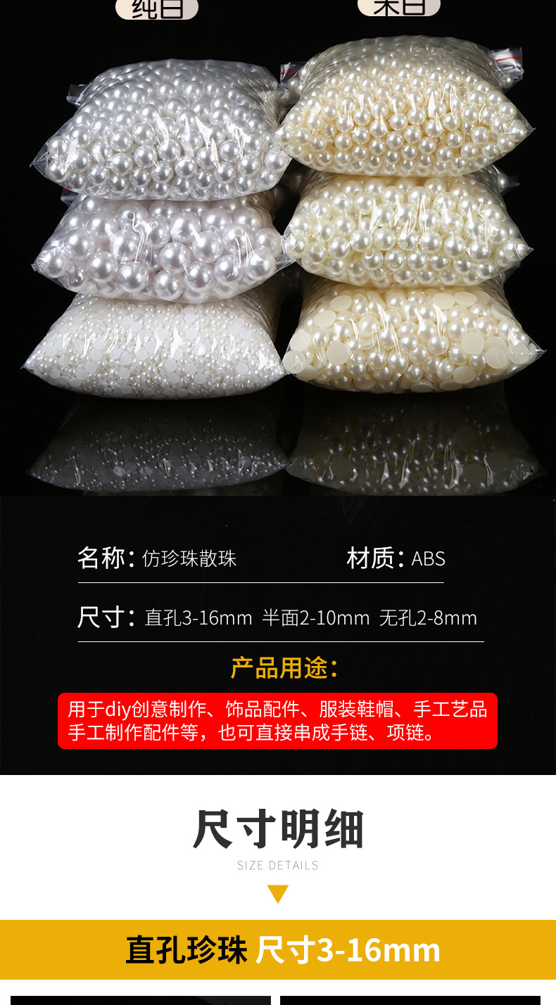 abs bright imitation pearl loose beads jewelry accessories wholesale high quality multi size straight hole Pearl material garment accessories