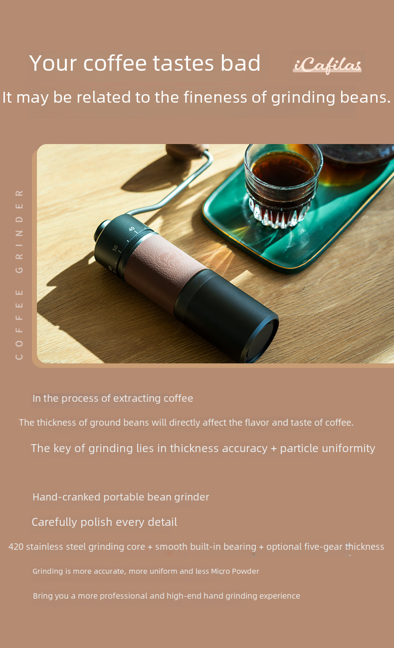 Manual Operated:The iCafilas hand-operated coffee grinder offers a hands-on experience, allowing you to control the grinding process and enjoy every sip.