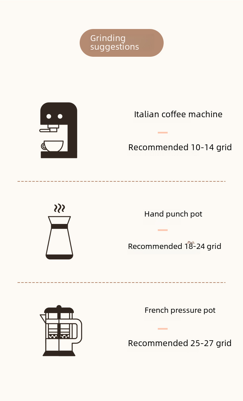 Seven-Point Grinding:The unique seven-point grinding design of this device provides a diverse range of grind sizes, catering to different tastes and brewing methods.