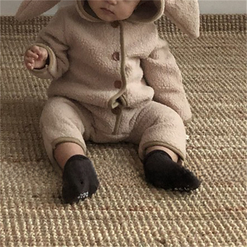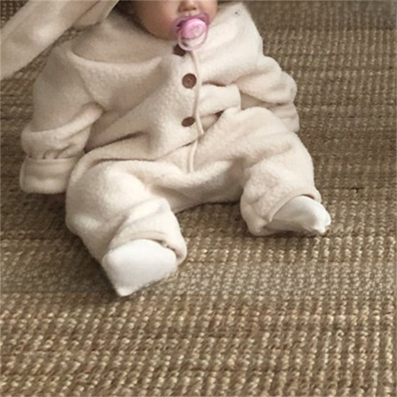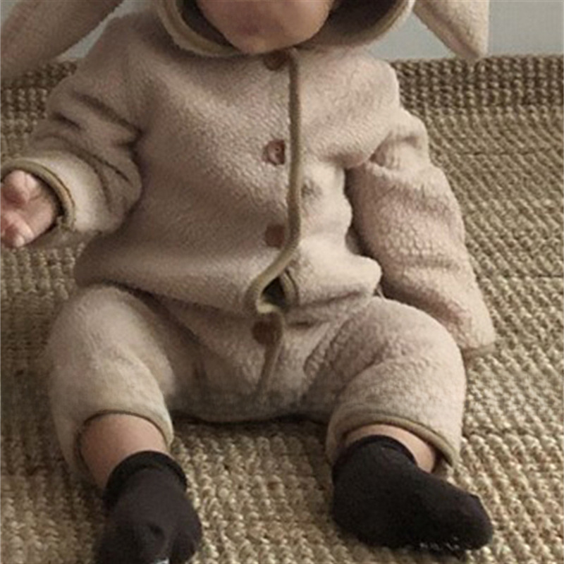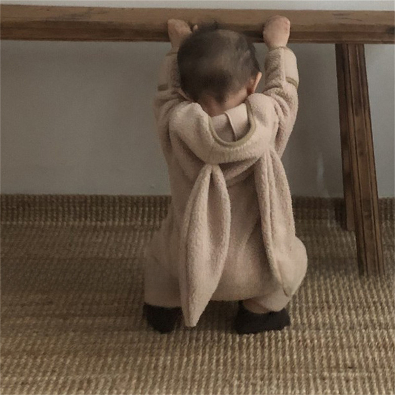 ins Korean Style Baby Boys and Girls Winter Clothes New Style Jumpsuit Cute Rabbit Ear Lamb Wool Hooded Climbing Clothes for Going Out