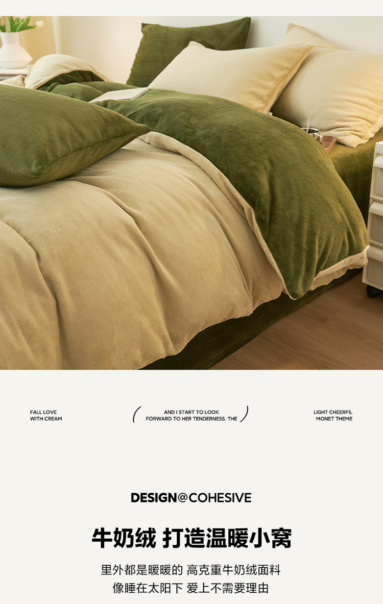 ins style cold-resistant milk velvet quilt cover four-piece winter warm student dormitory bed sheet three-piece bedding 4