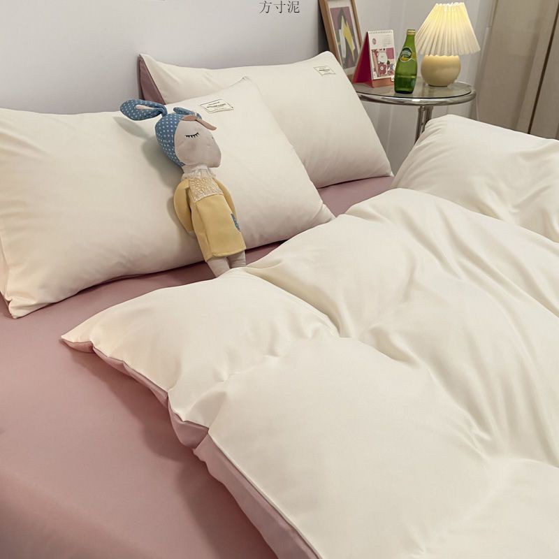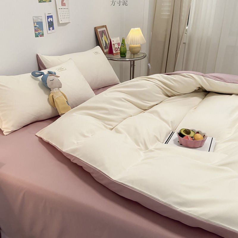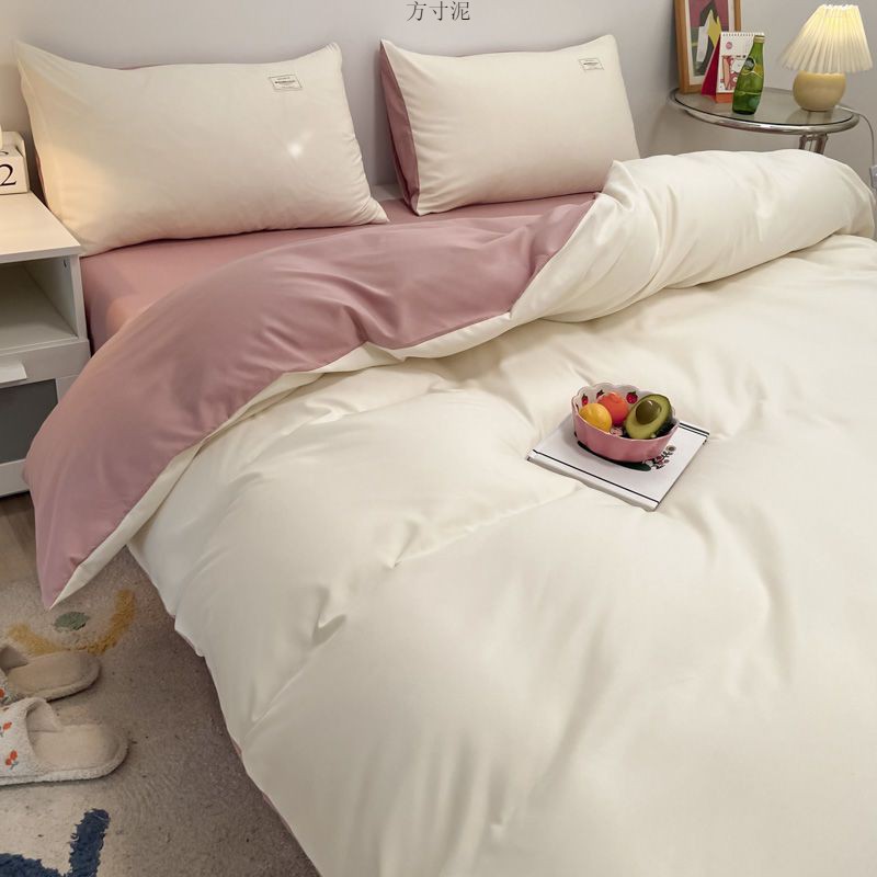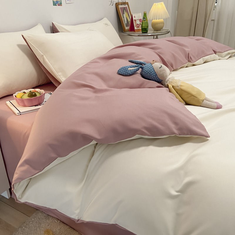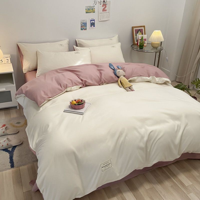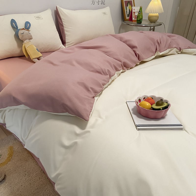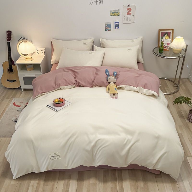 ins washing cotton milk white powder quilt cover four-piece set brushed craft double bed single set student bed three-piece set 4 Free Shipping