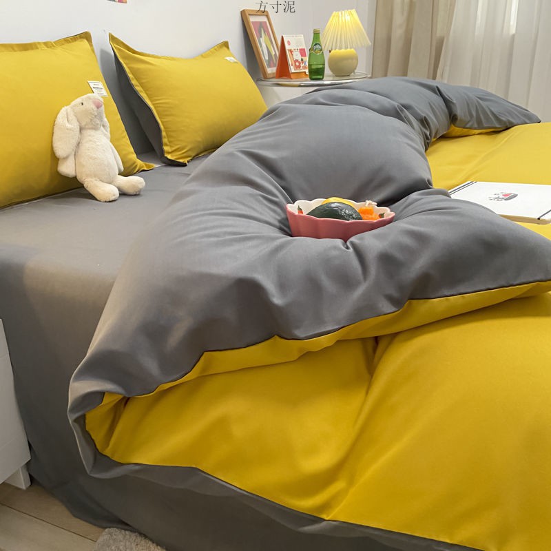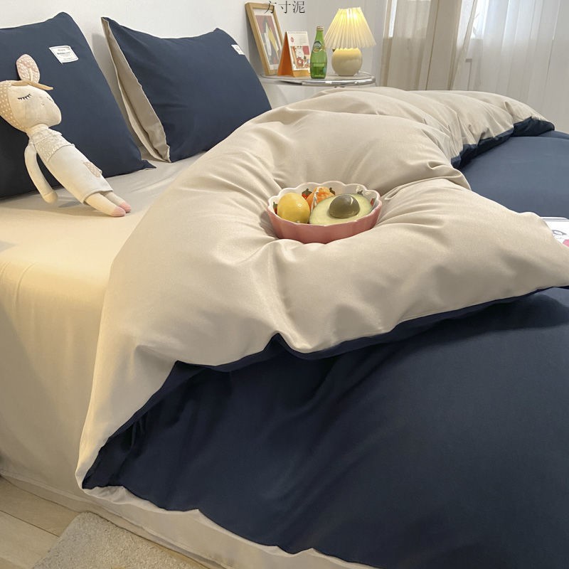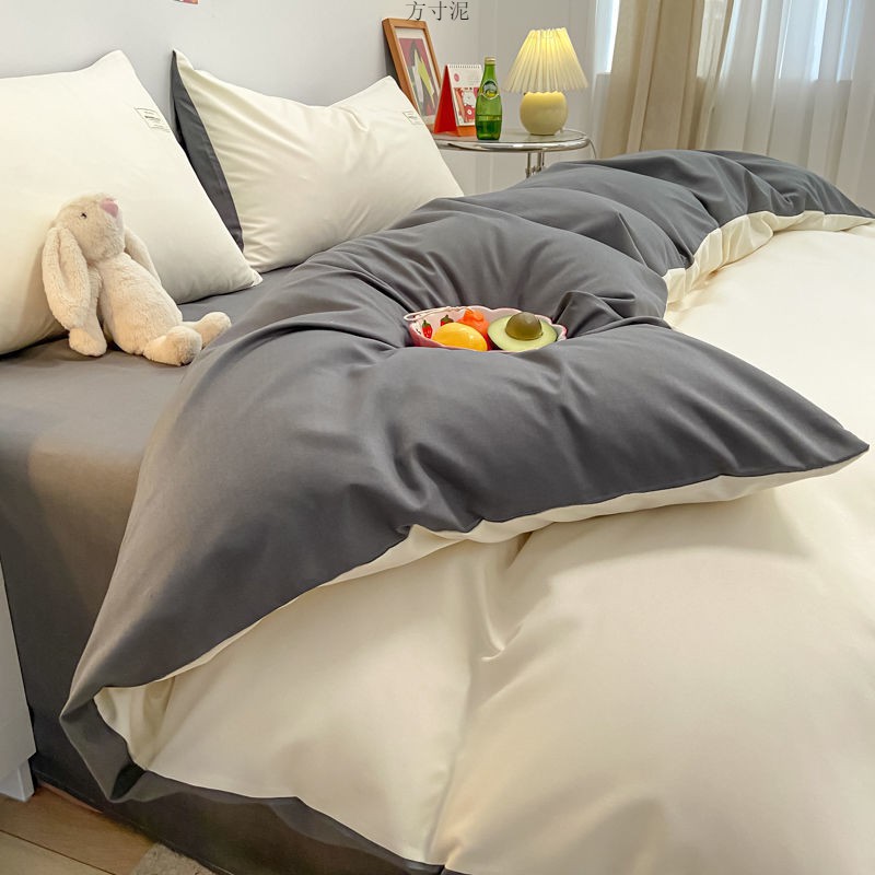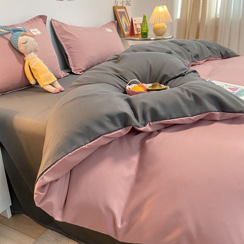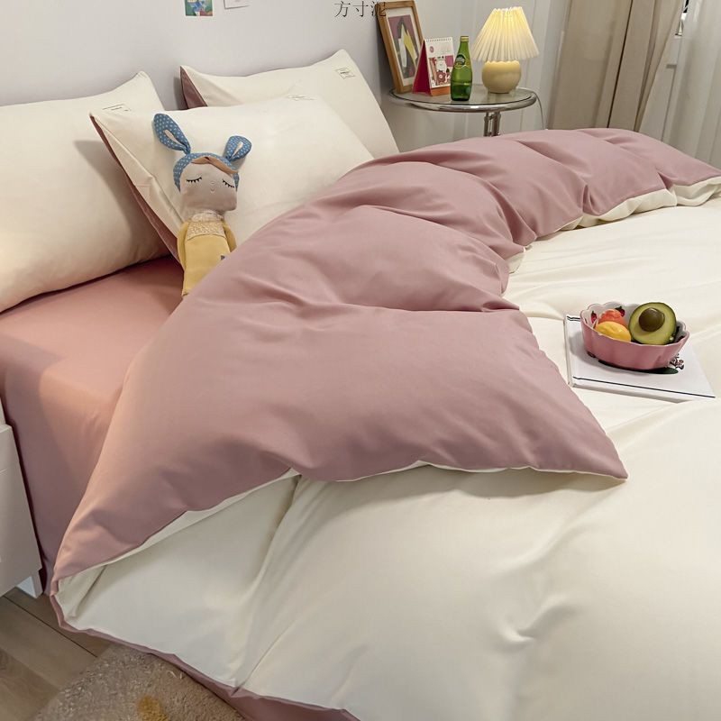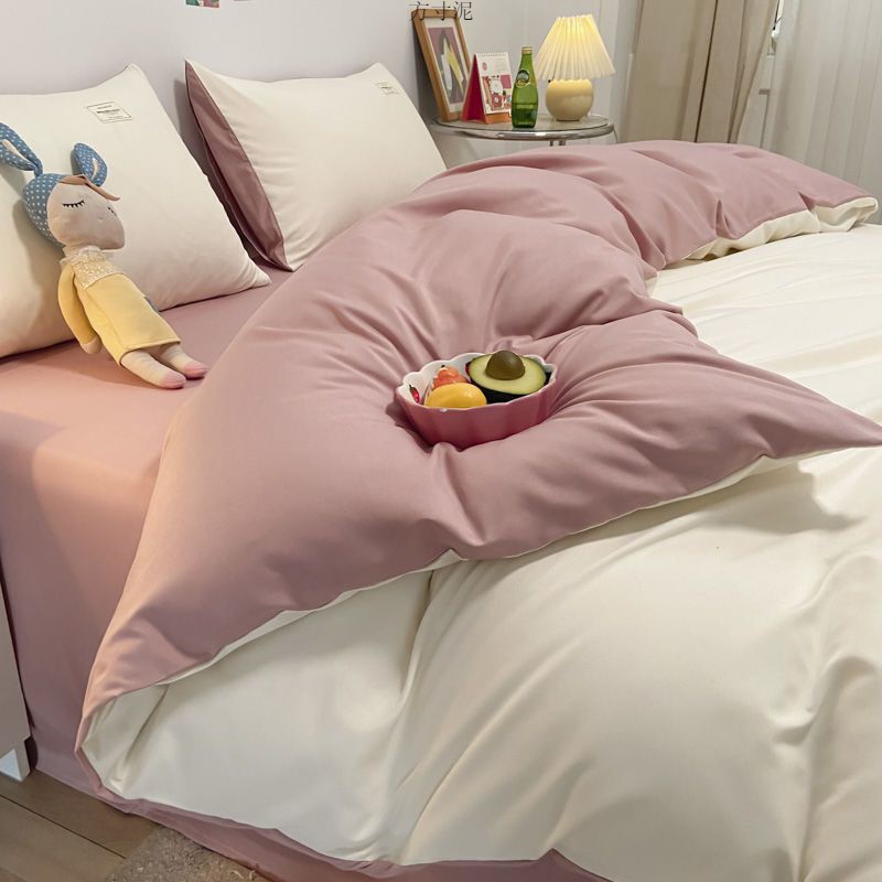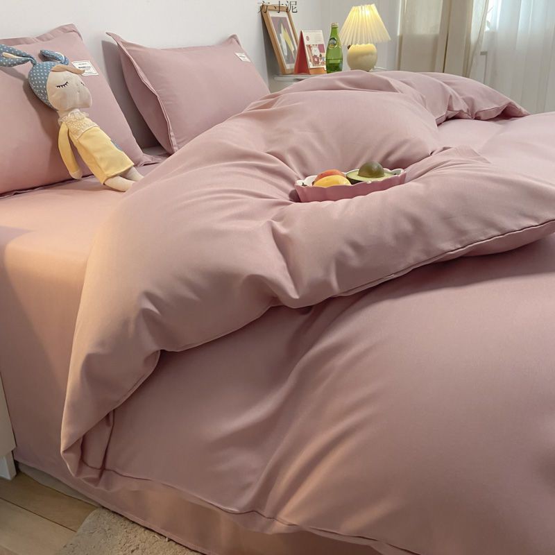 ins washing cotton milk white powder quilt cover four-piece set brushed craft double bed single set student bed three-piece set 4 Free Shipping