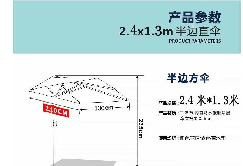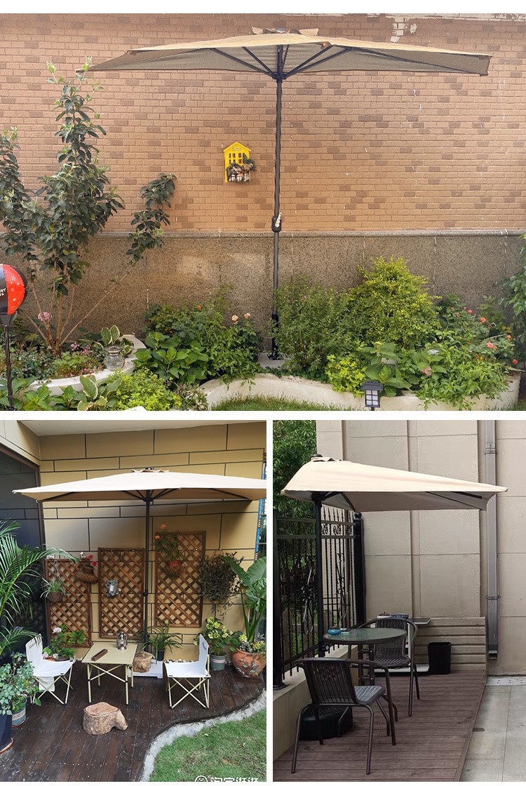 jXE Outdoor Half Umbrella Wall Side Balcony Sunshade Umbrella Side Rectangular Courtyard Umbrella Garden Terrace Sun Umbrella Flower