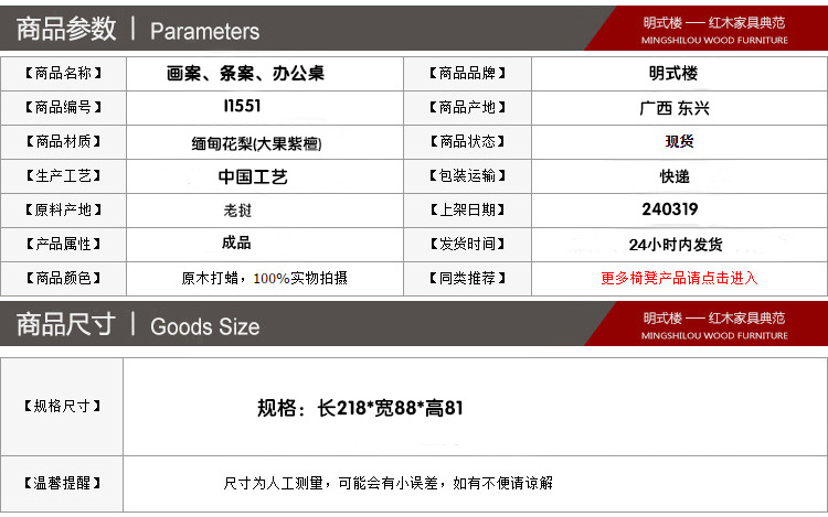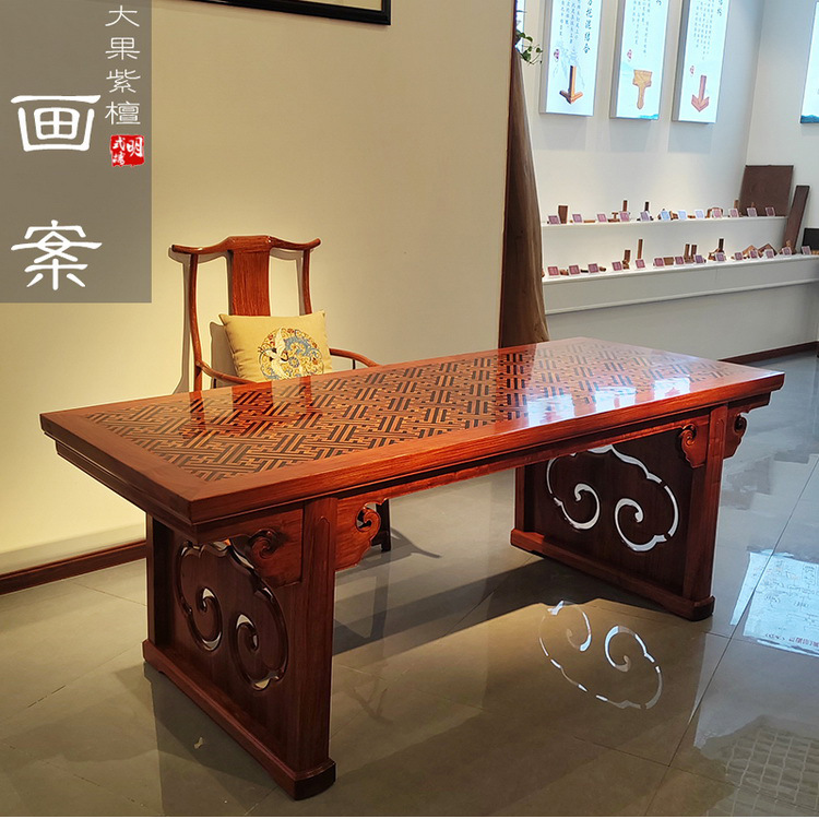 mahogany furniture big fruit red sandalwood burmese rosewood inlaid with sour branch panel painting case desk strip case desk 11551