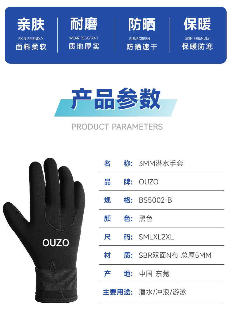 ouzo3 5mm diving gloves fishing and hunting anti cut gloves non slip sun protection cold warm surfing snorkeling gloves