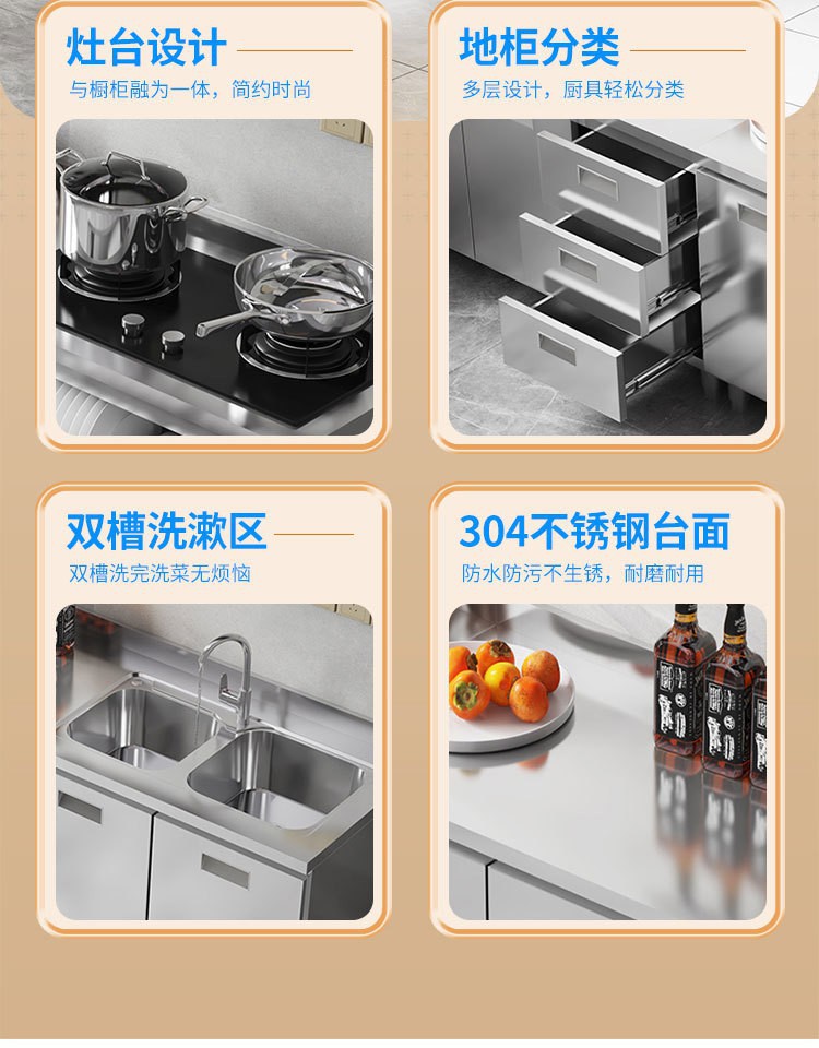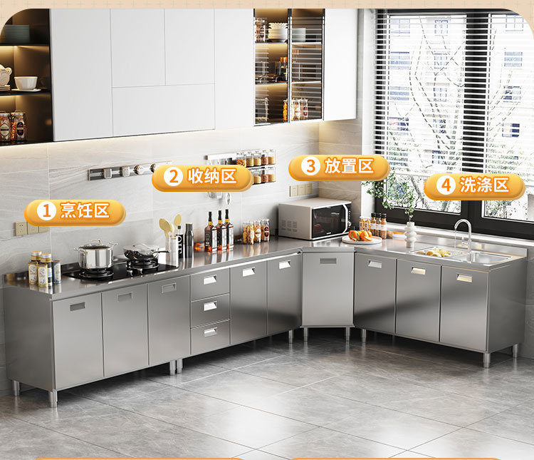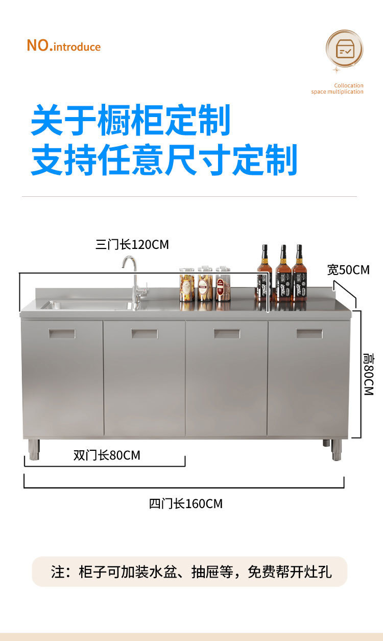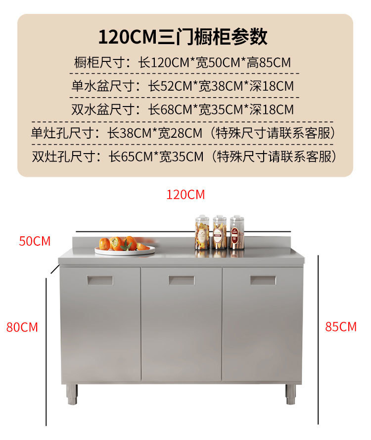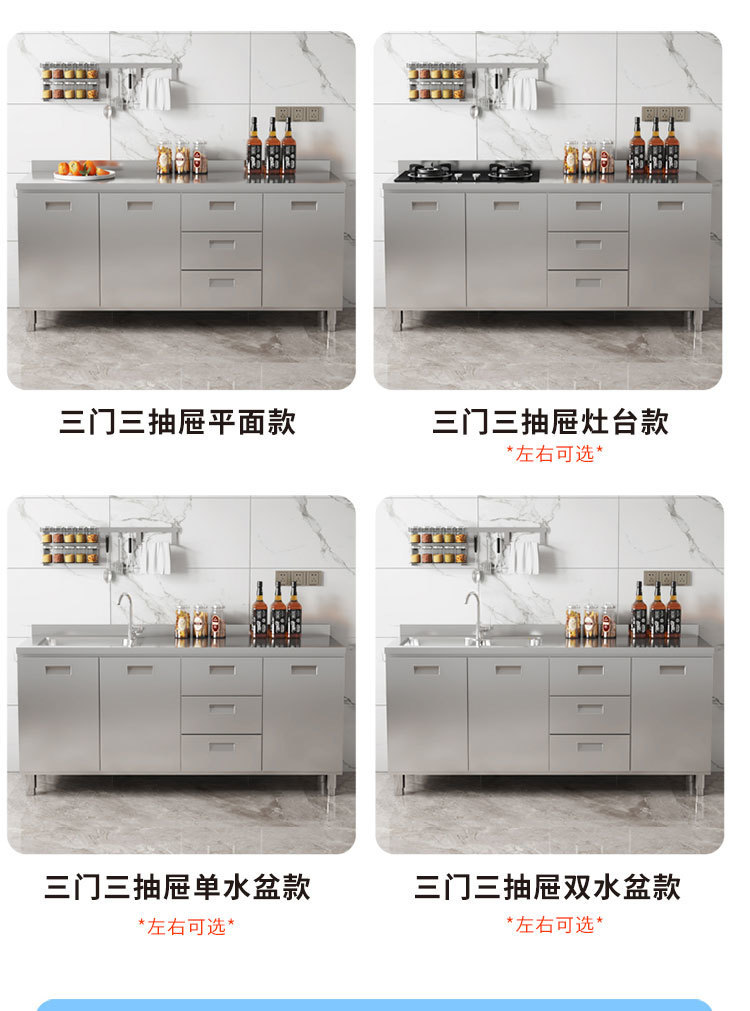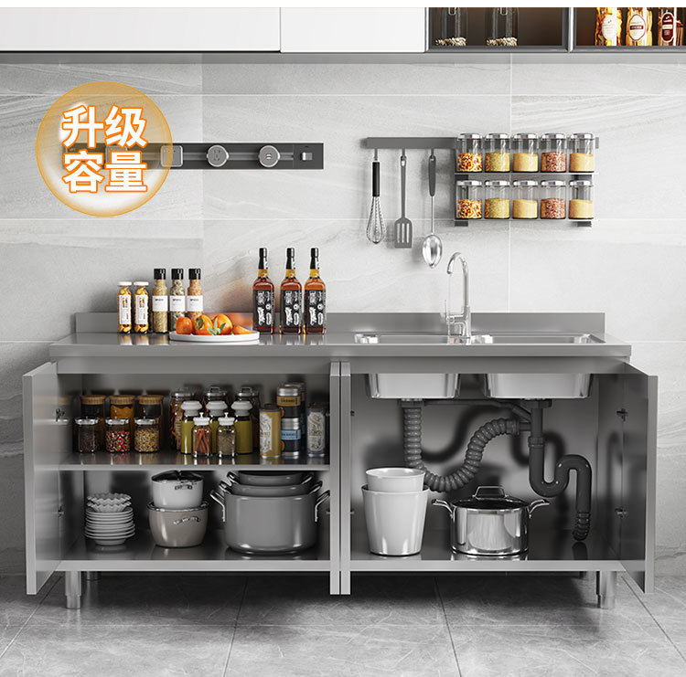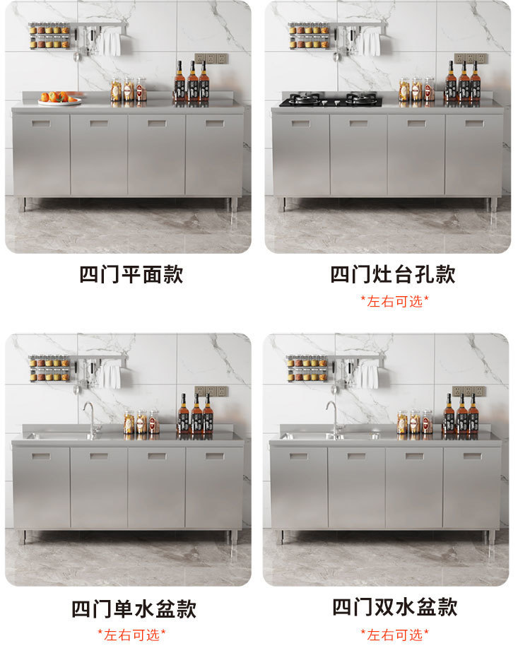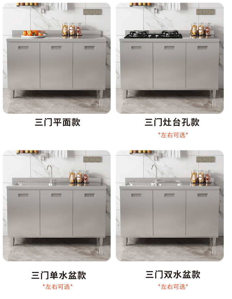 skQ Self contained 304 Integral Stainless Steel Kitchen Cabinet Integrated Simple Stove Storage Cupboard Household Small Household