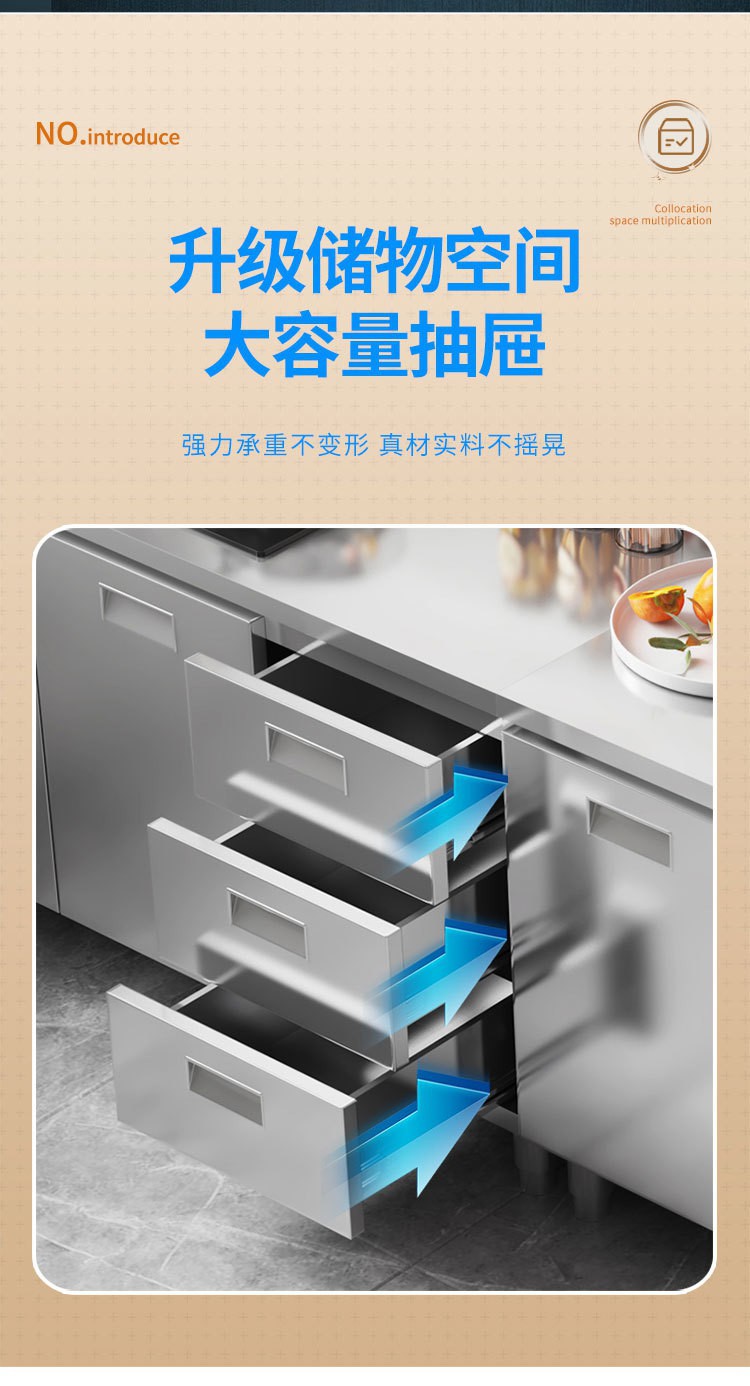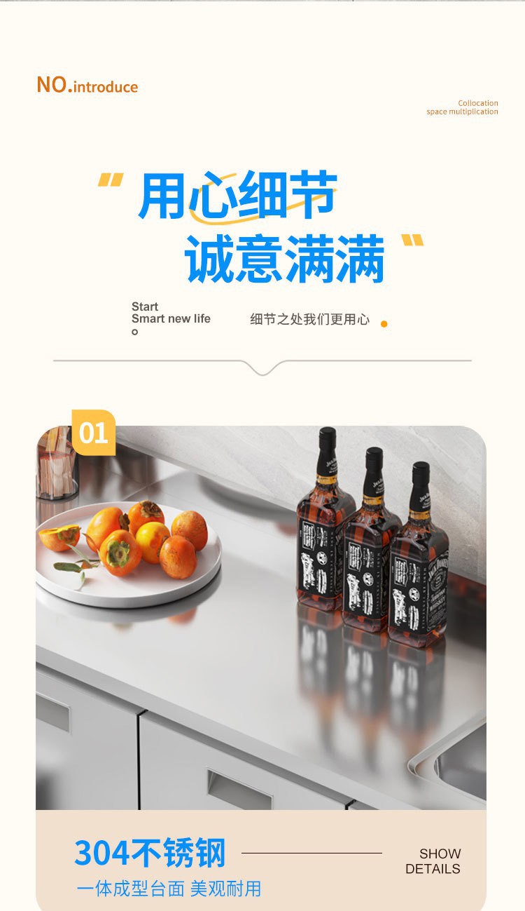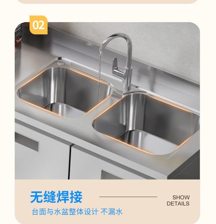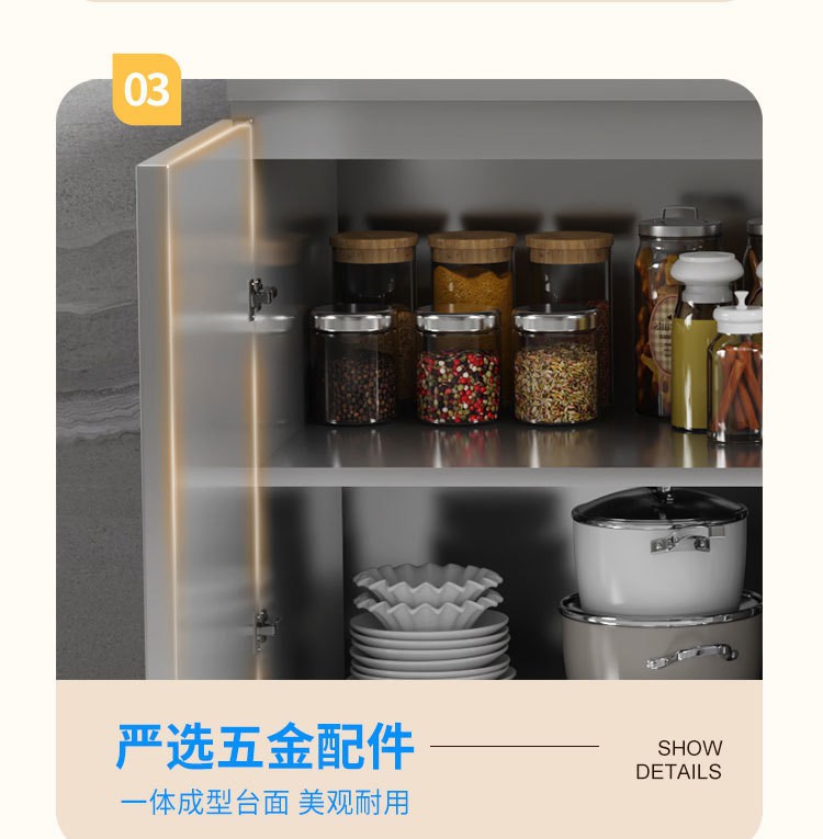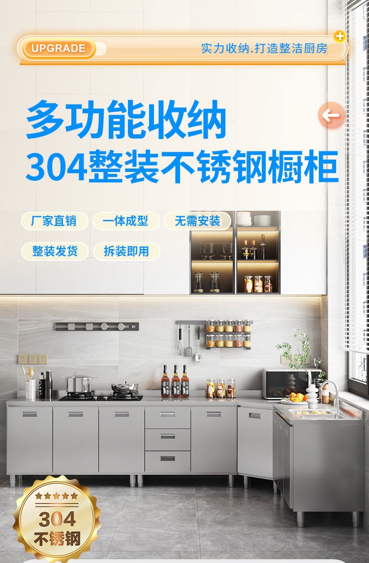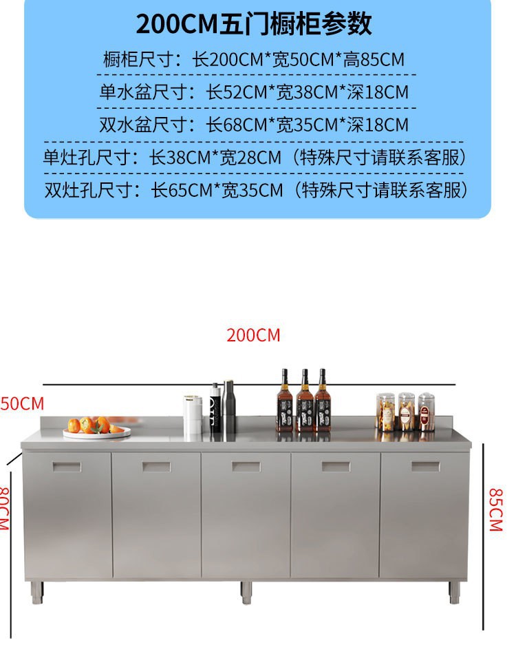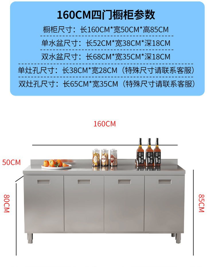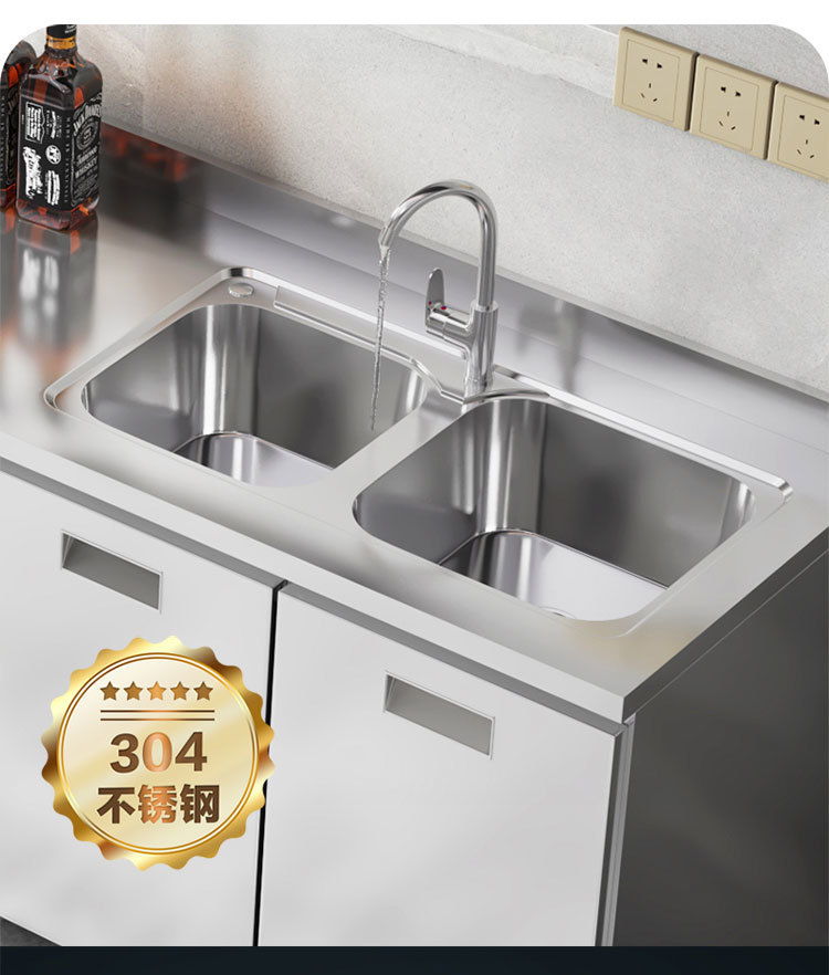 skQ Self contained 304 Integral Stainless Steel Kitchen Cabinet Integrated Simple Stove Storage Cupboard Household Small Household