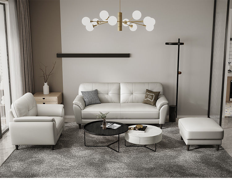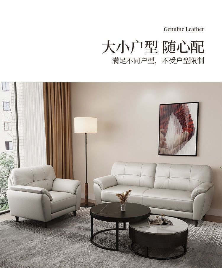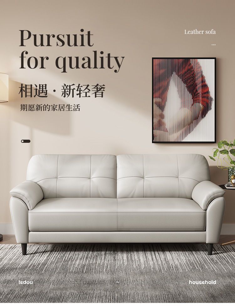 tpf light luxury living room retro small apartment modern simple leather sofa office three person double Nordic room