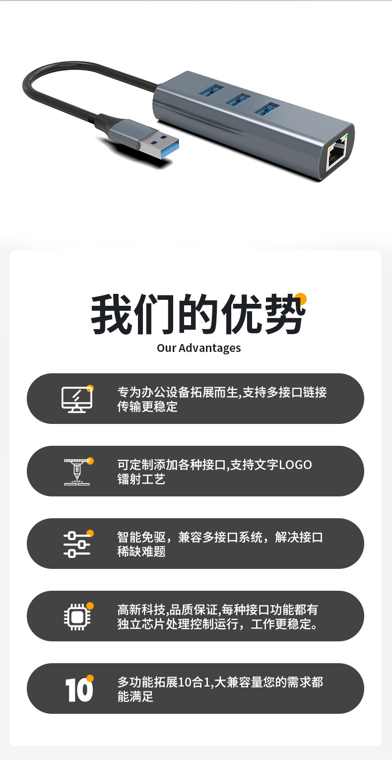 usb extender HUB HUB four port HUB rectangular USB extender gigabit network multi interface docking station