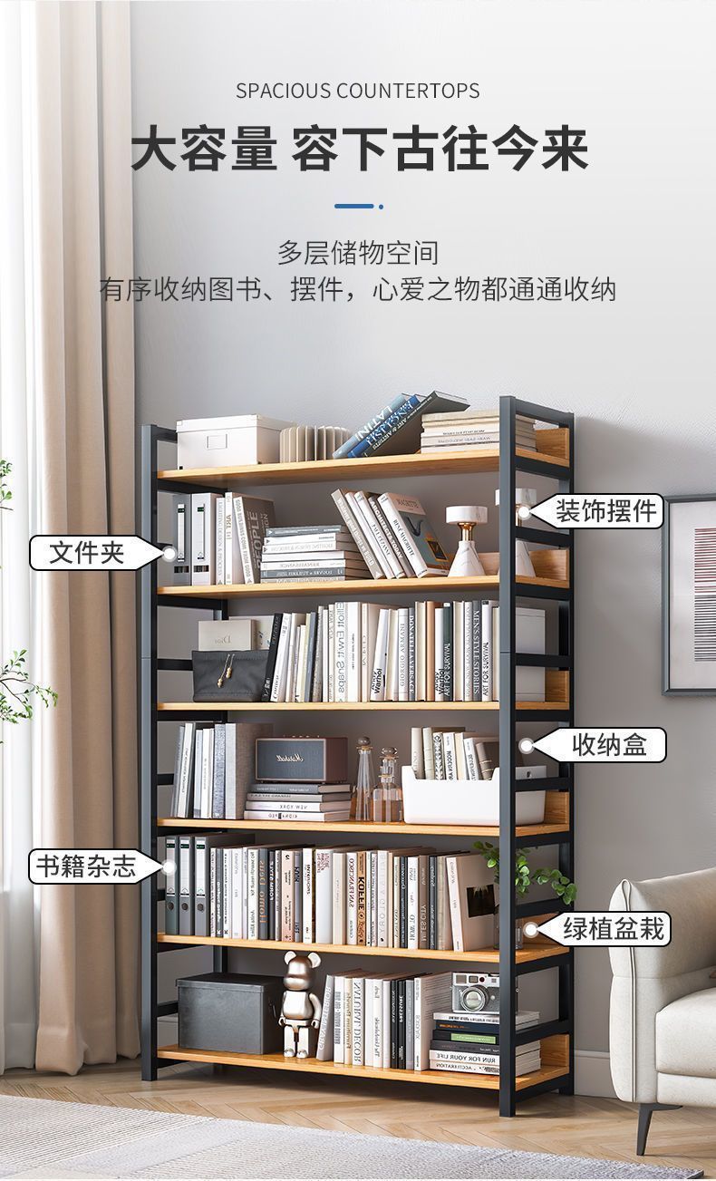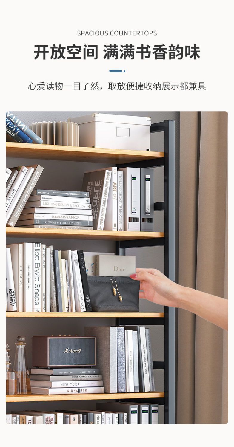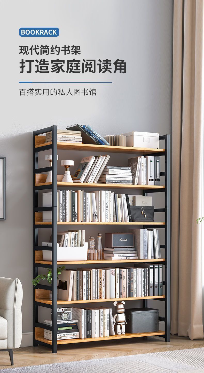 w! Bookshelf shelf floor iron bookcase steel wood storage shelf room decoration multi-layer bedroom living room home shelf