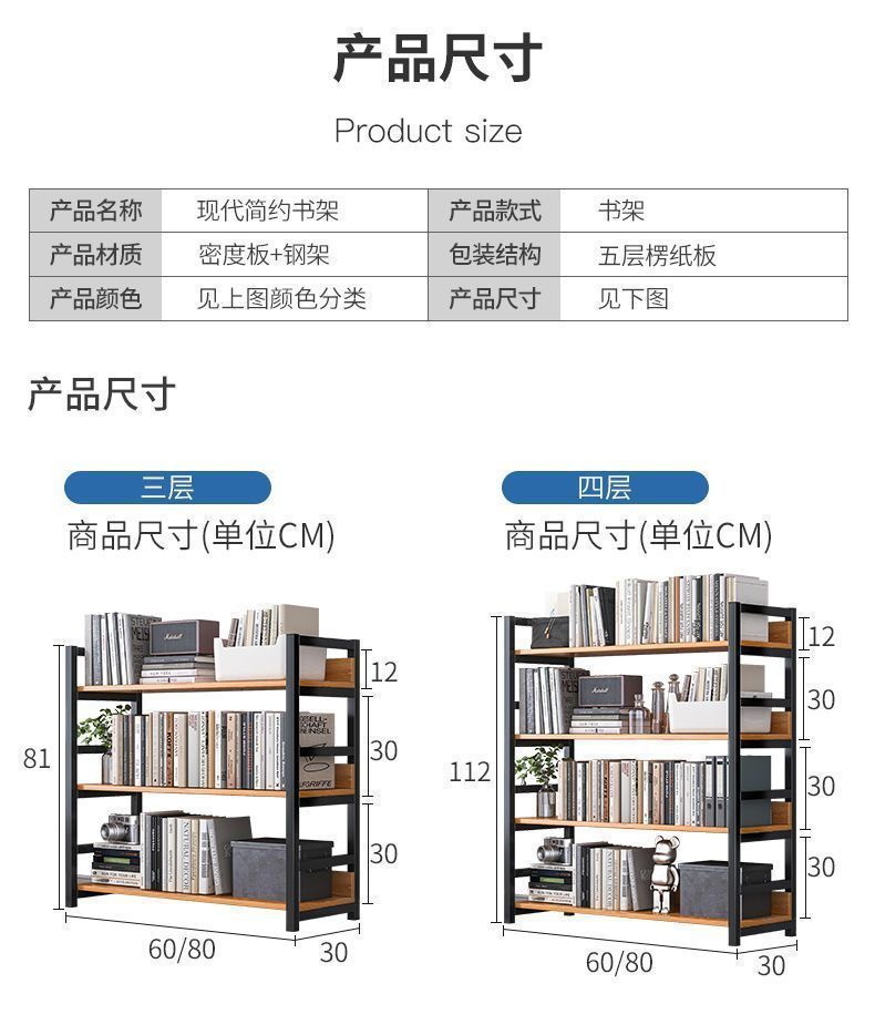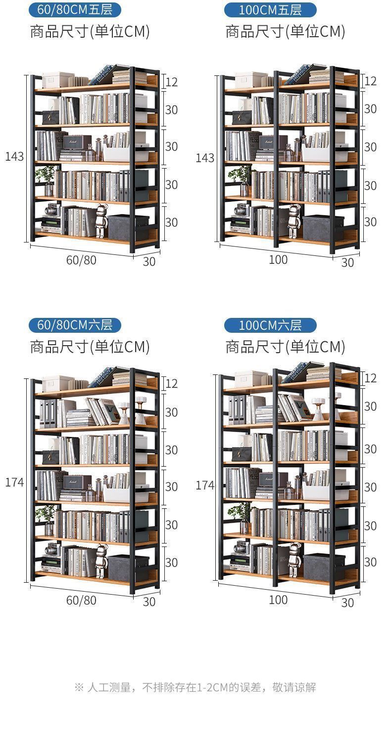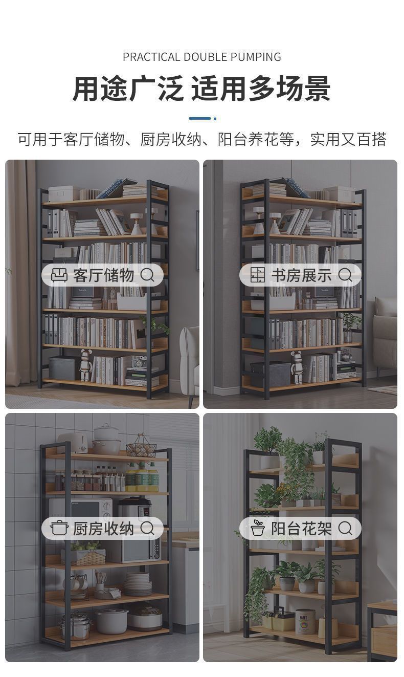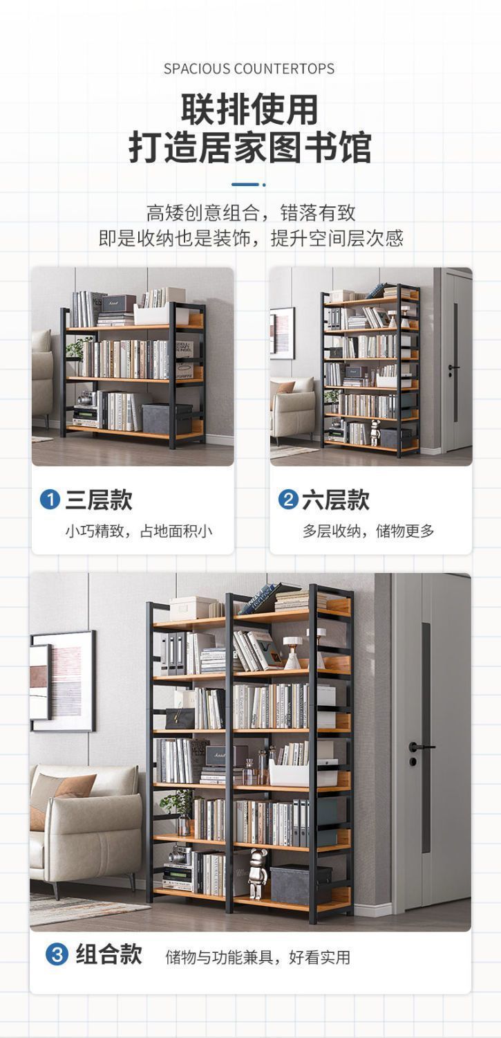 w! Bookshelf shelf floor iron bookcase steel wood storage shelf room decoration multi-layer bedroom living room home shelf