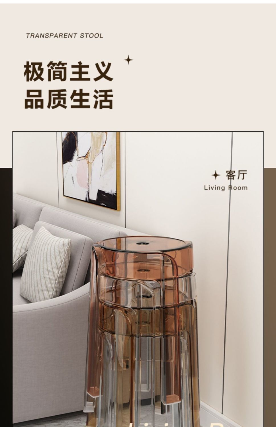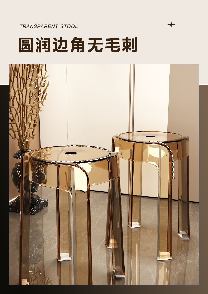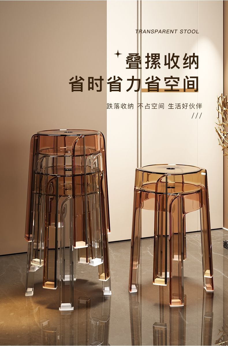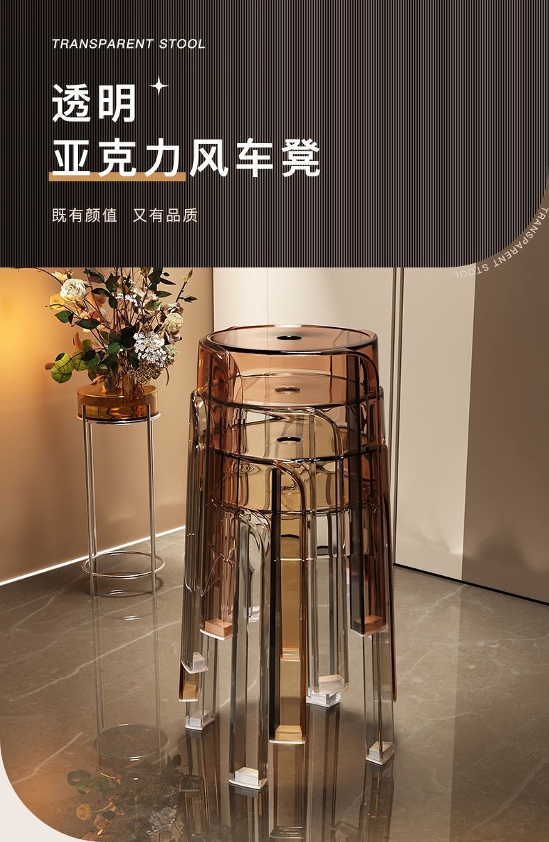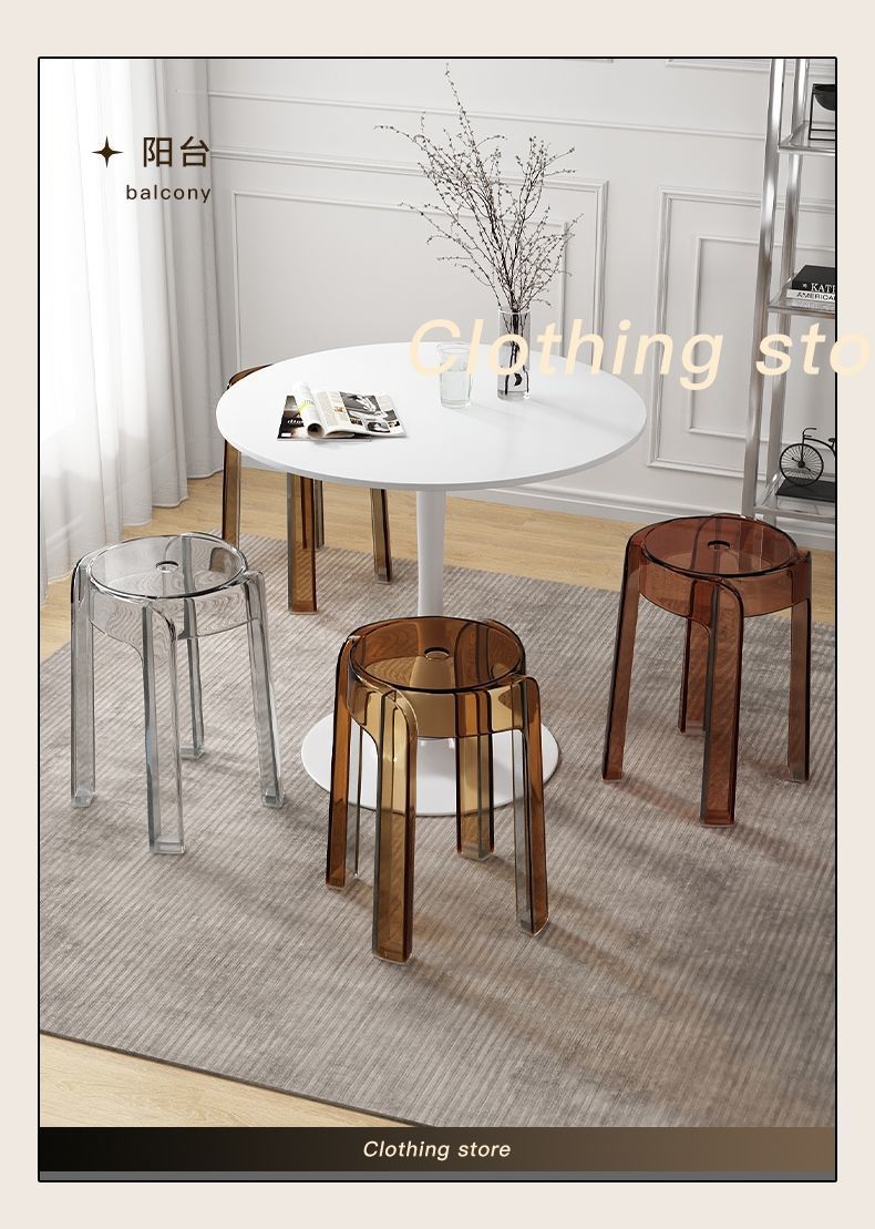w Light luxury plastic transparent stool household thickened dining chair stacked bench windmill round stool small stool acrylic chair