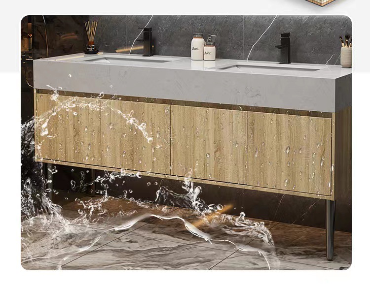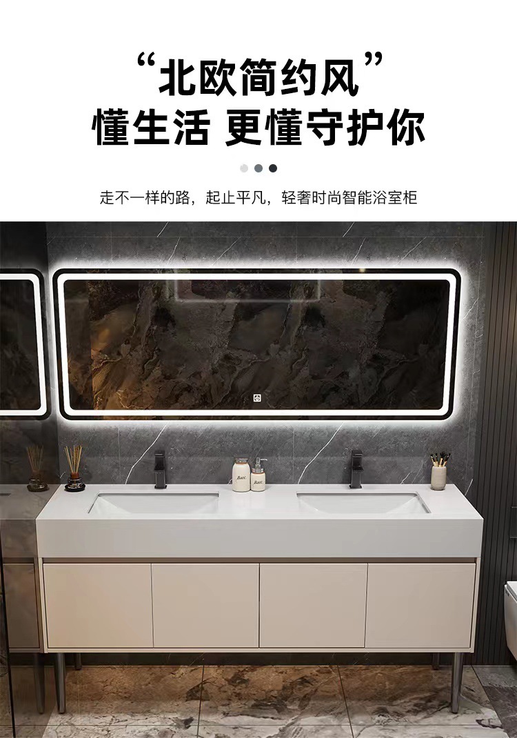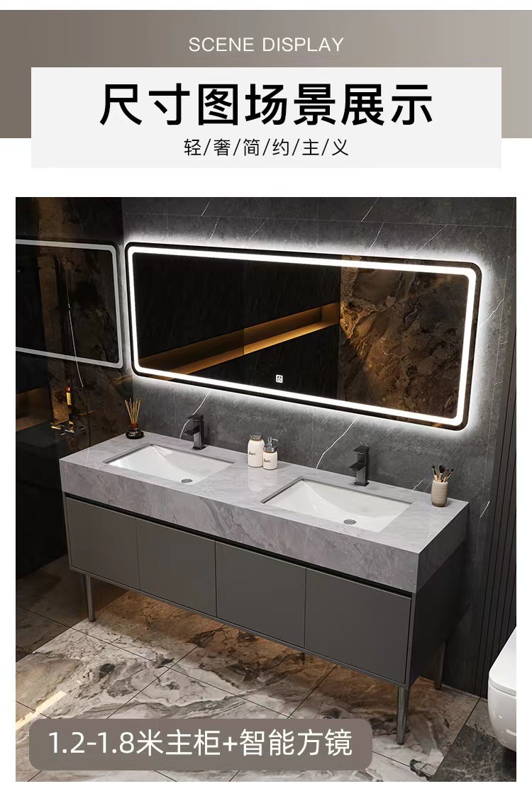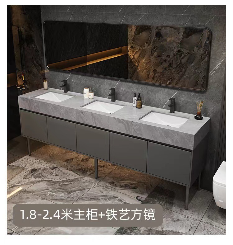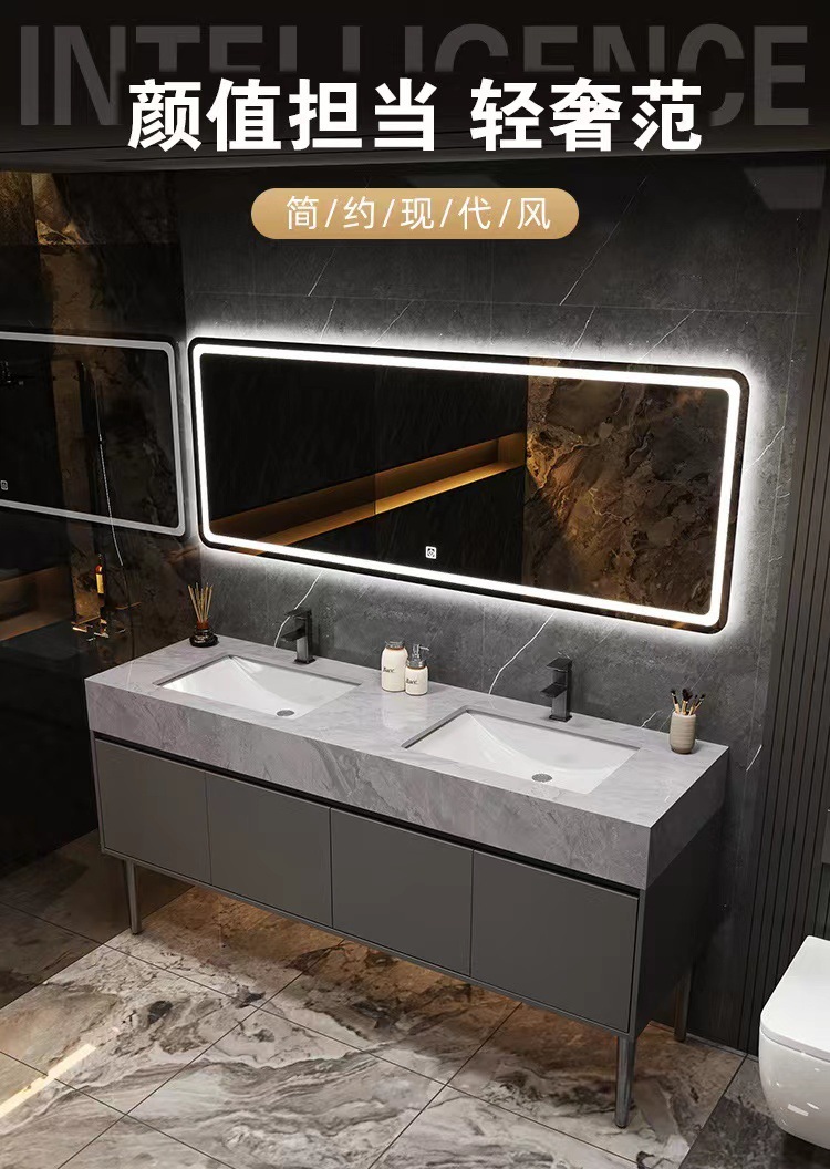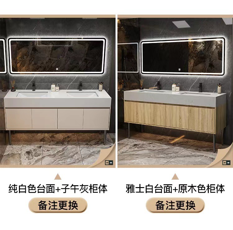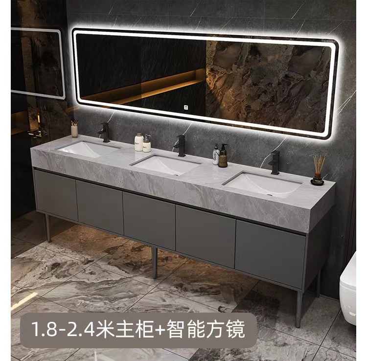 w Simple marble double basin floor standing smart bathroom cabinet public bathroom double washstand hand washing and face washing