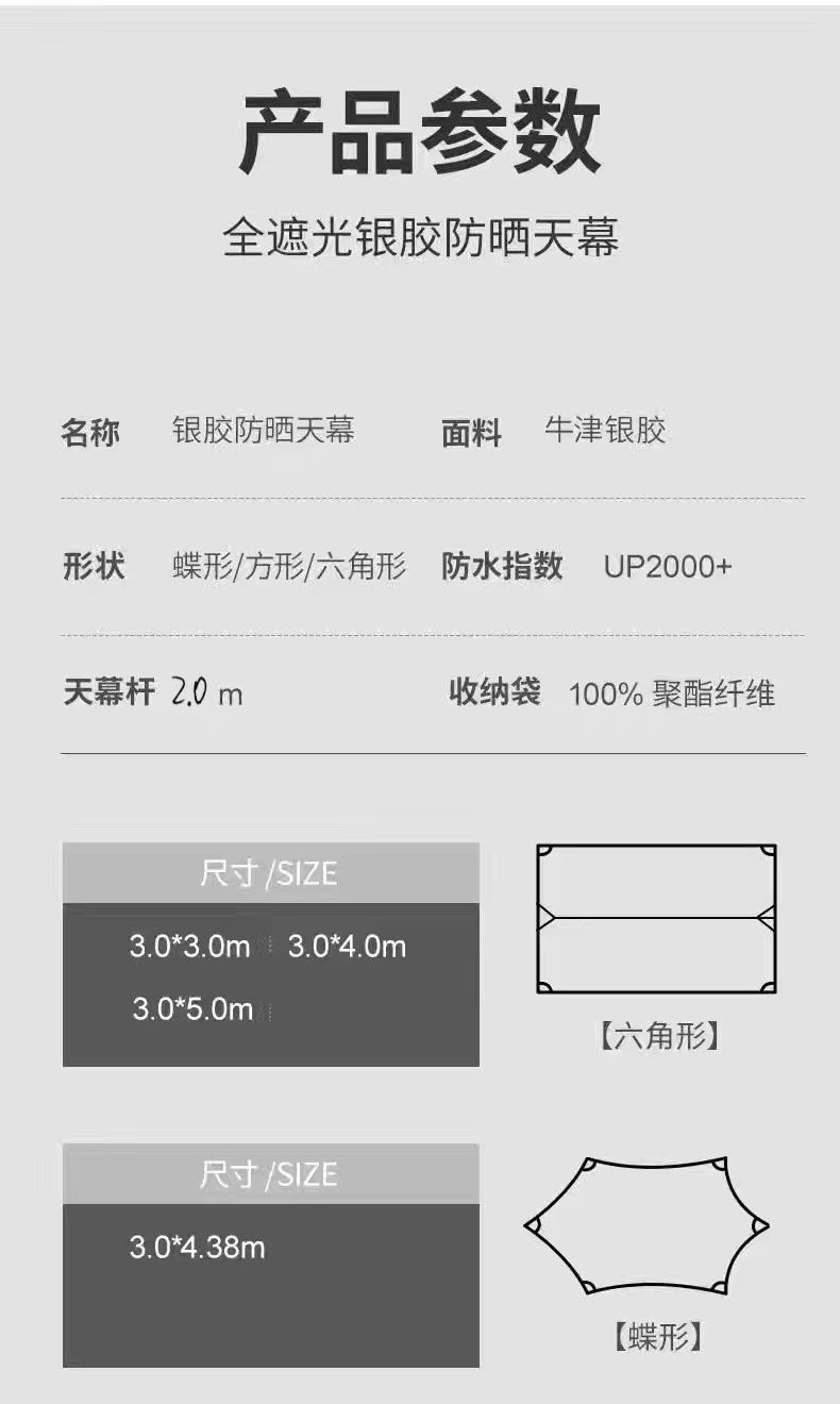 xPx Outdoor Silver Coated Canopy Tent Thick Depth Rainproof Tent Cloth Portable Camping Camping Awning Beach