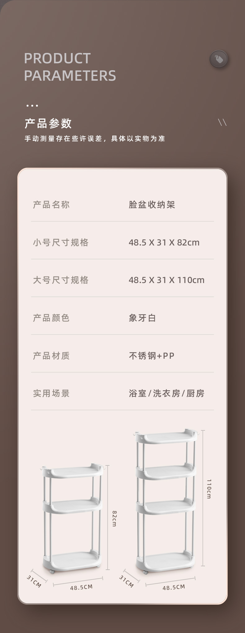 xy @ bathroom washbasin bucket storage rack kitchen gap bathroom balcony trolley storage multi-layer shelf plastic